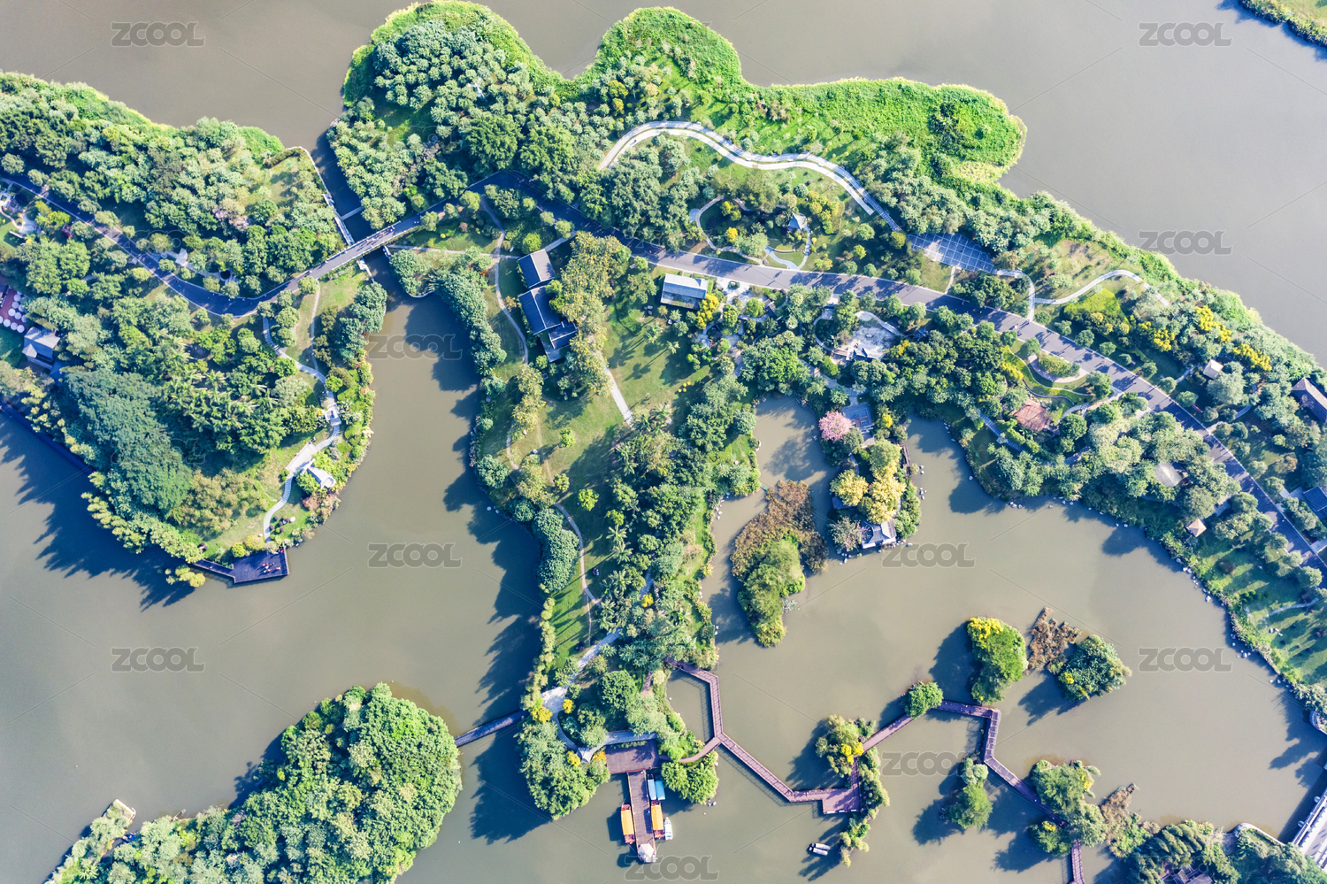 航拍河南省平顶山市白鹭洲国家城市湿地公园
