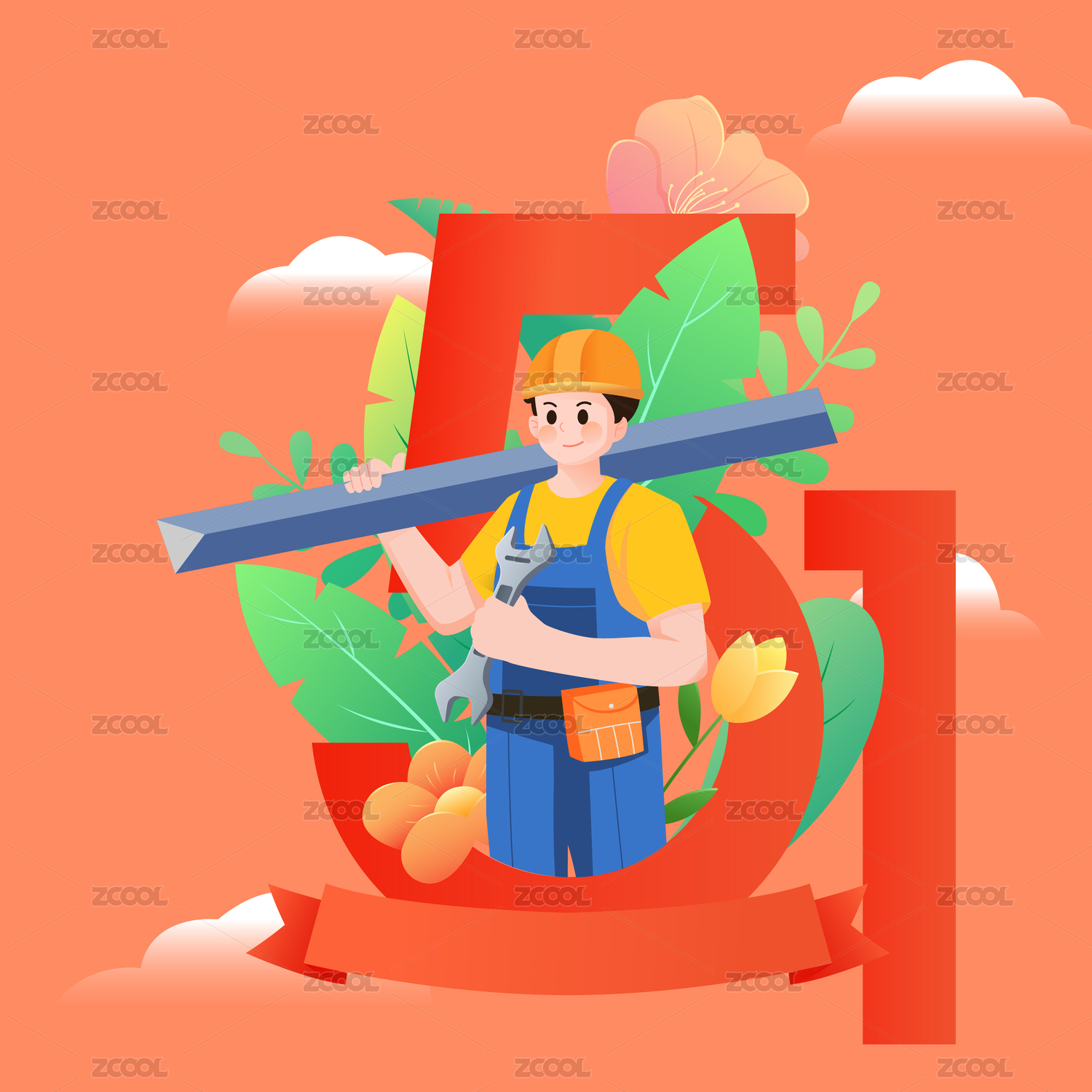 五一劳动节致敬劳动者建筑工人人物矢量插画