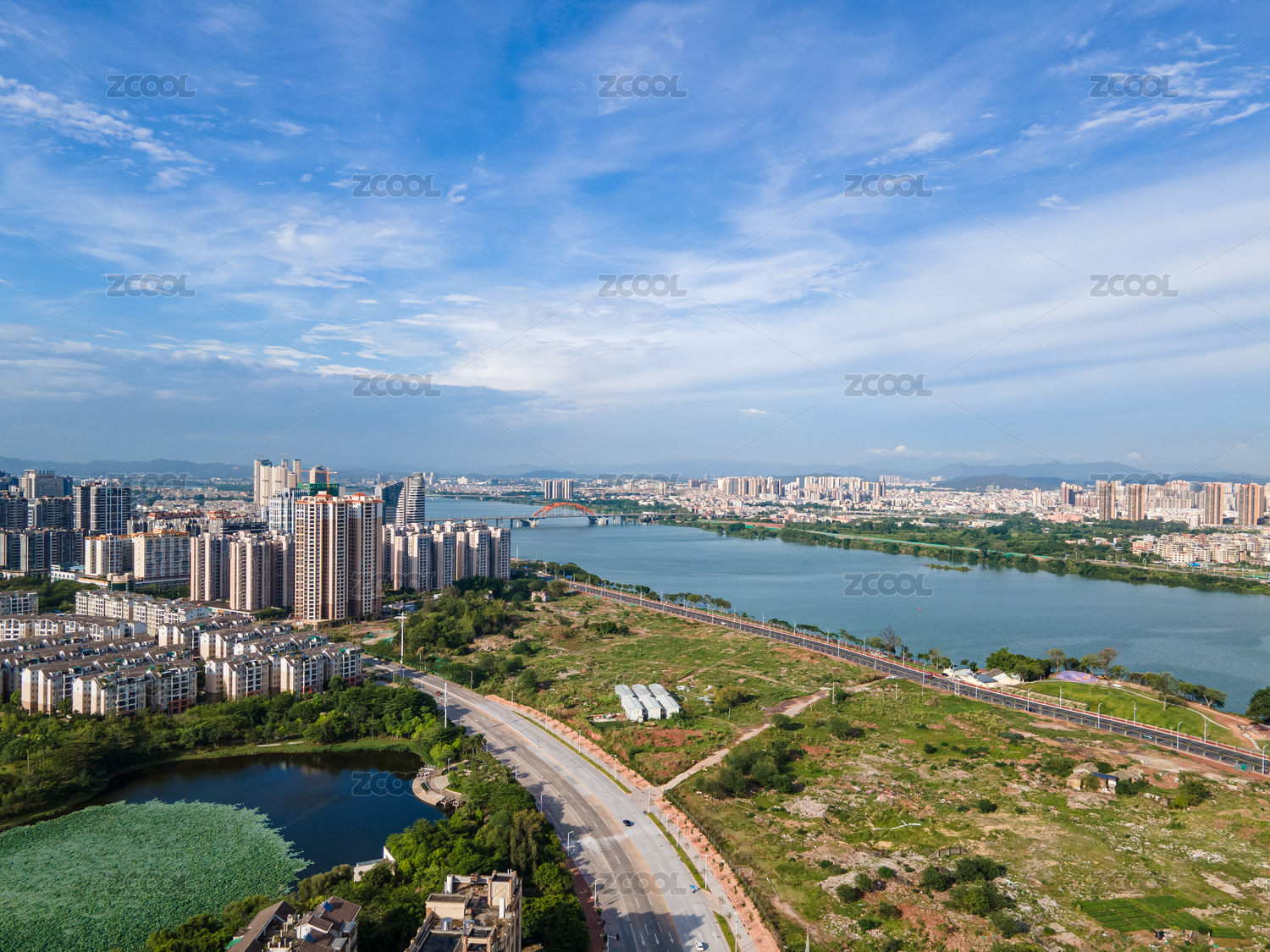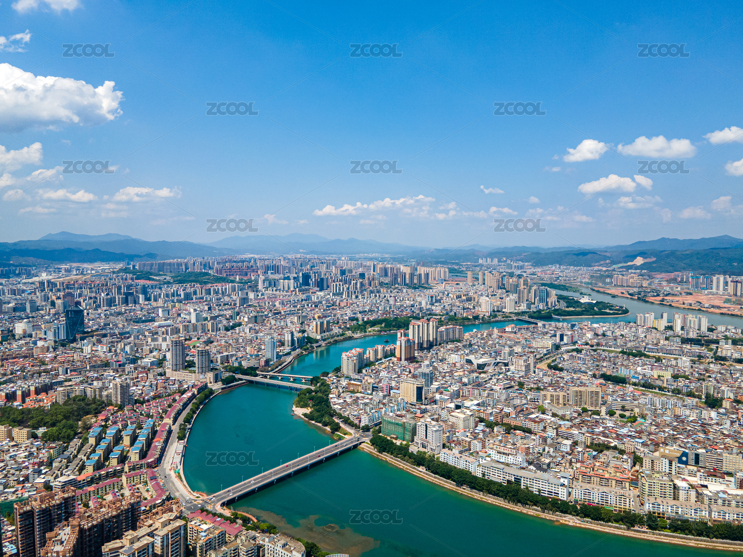 航拍广州东部新建成的商业住宅和混在一起的城中村