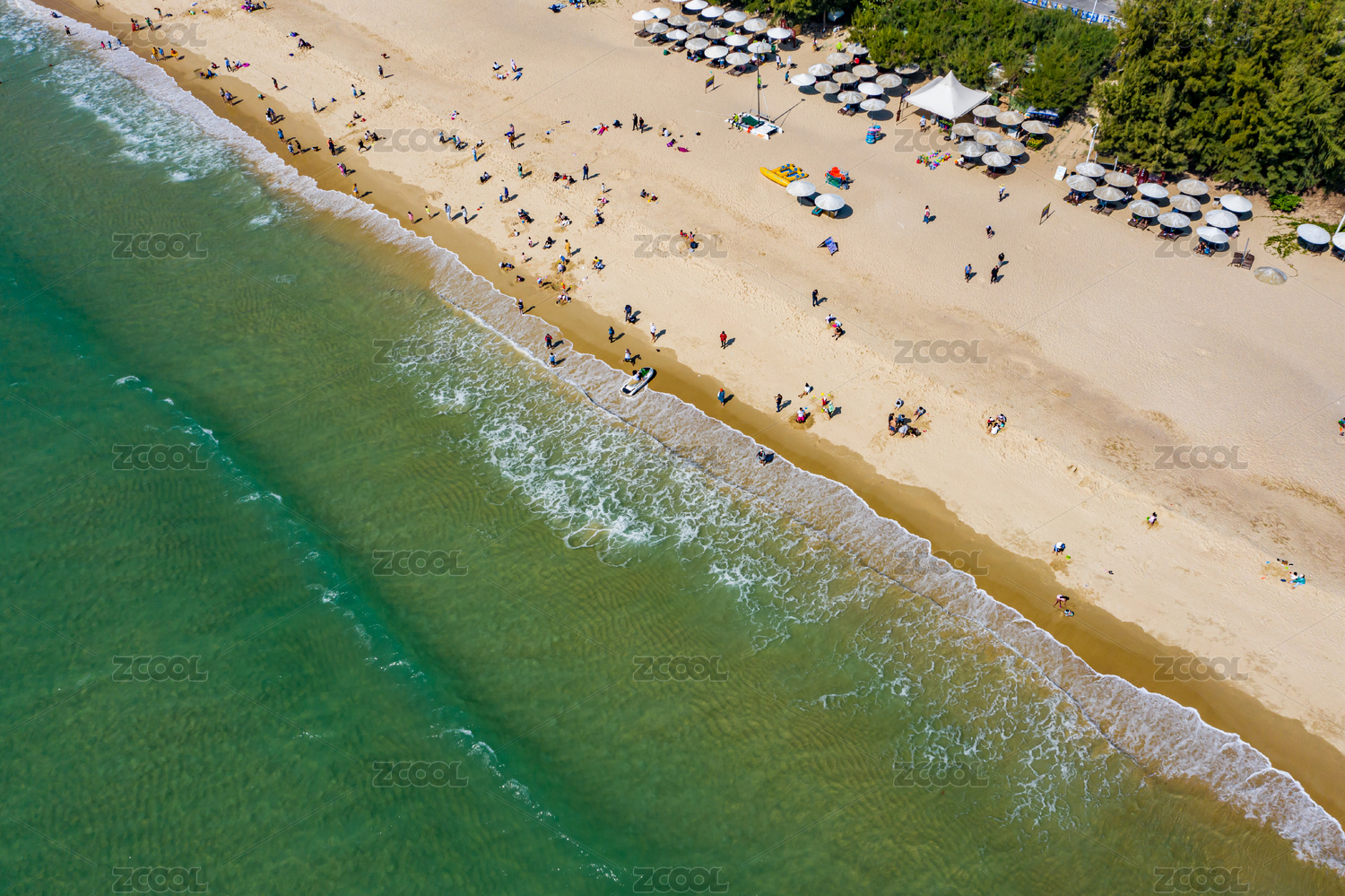 航拍海南三亚亚龙湾热带海滨纯净的蓝色海滩