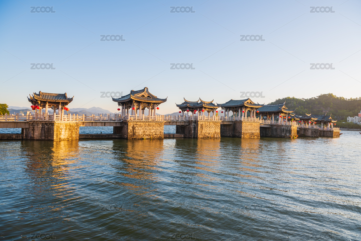 广东潮州冬季日出时的广济桥