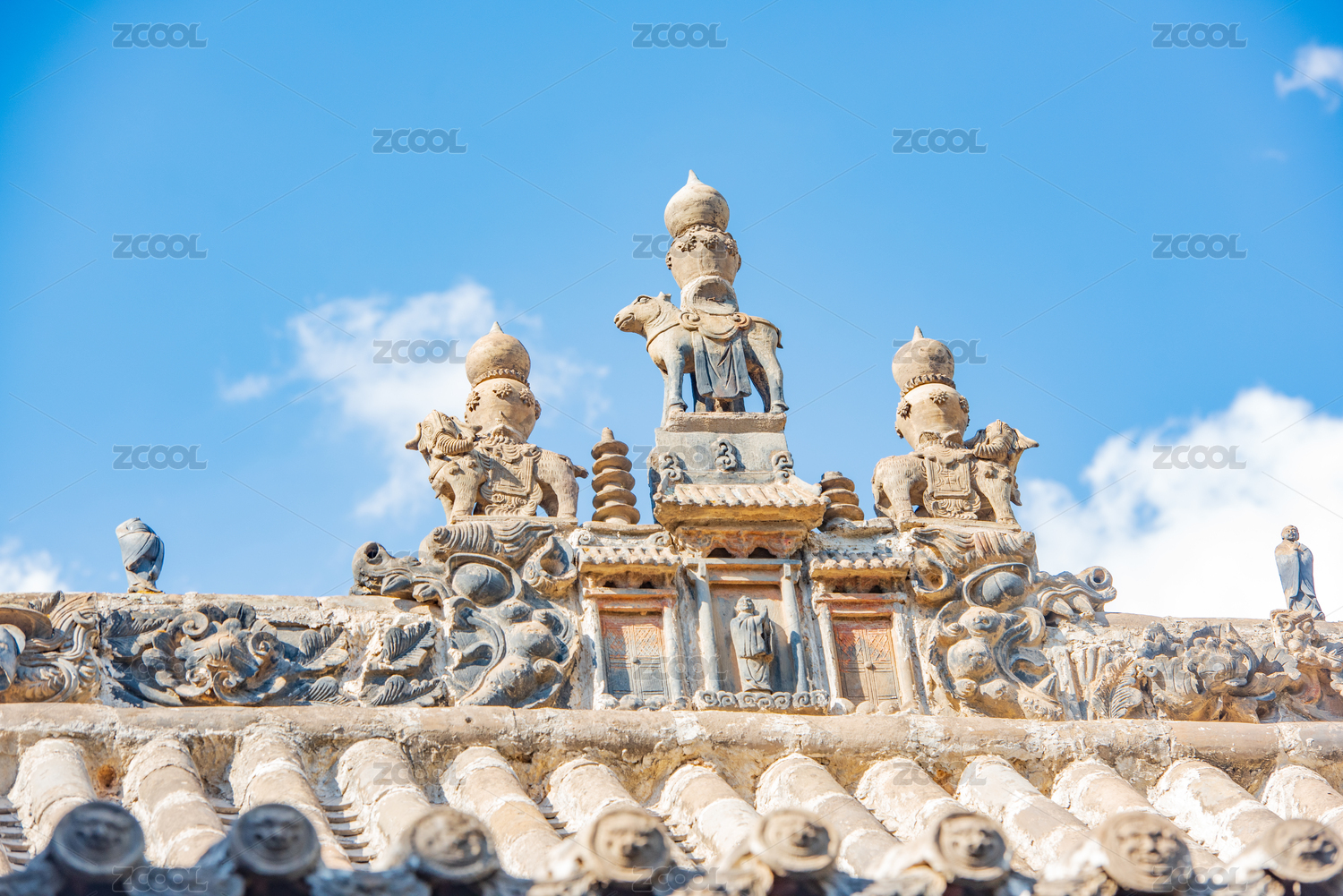 甘肃陇西李氏宗祠古建筑屋顶上的动物雕刻