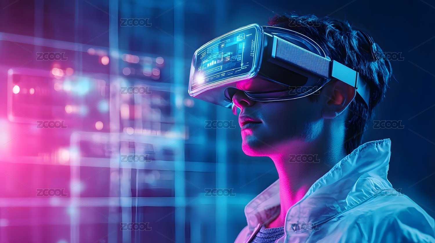 男人戴着VR虚拟现实头盔体验元宇宙未来技