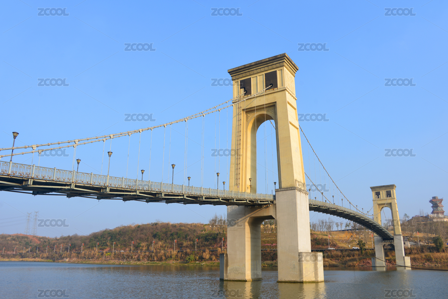 中国四川成都金堂沱江及科玛小镇科玛索桥