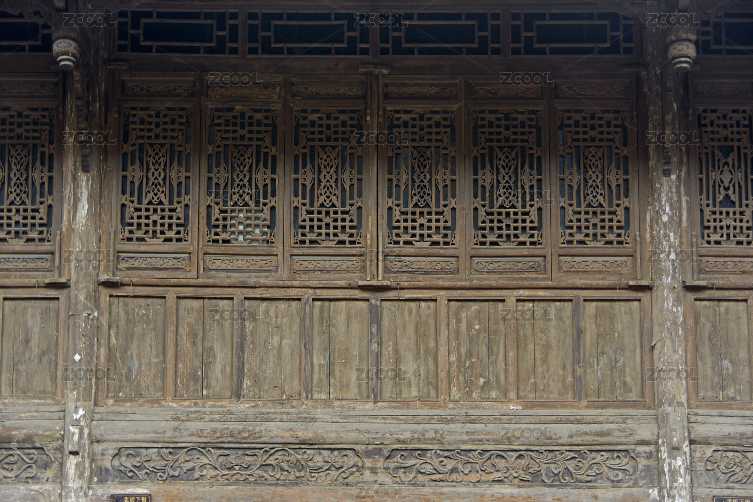 中国浙江省新昌县梅渚古镇古建筑木门特写