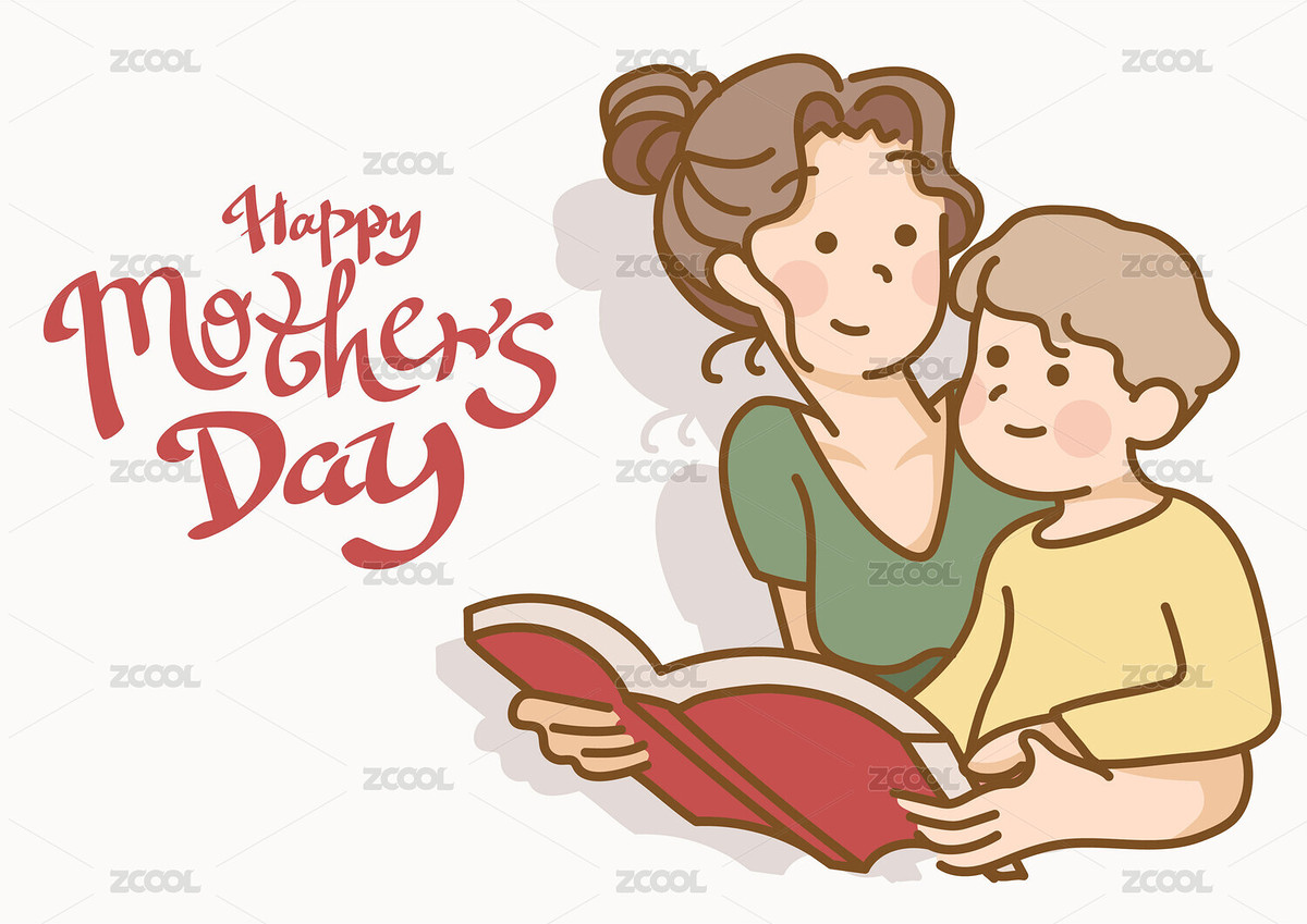 母亲节插画:妈妈陪你长大,一起看书学习。