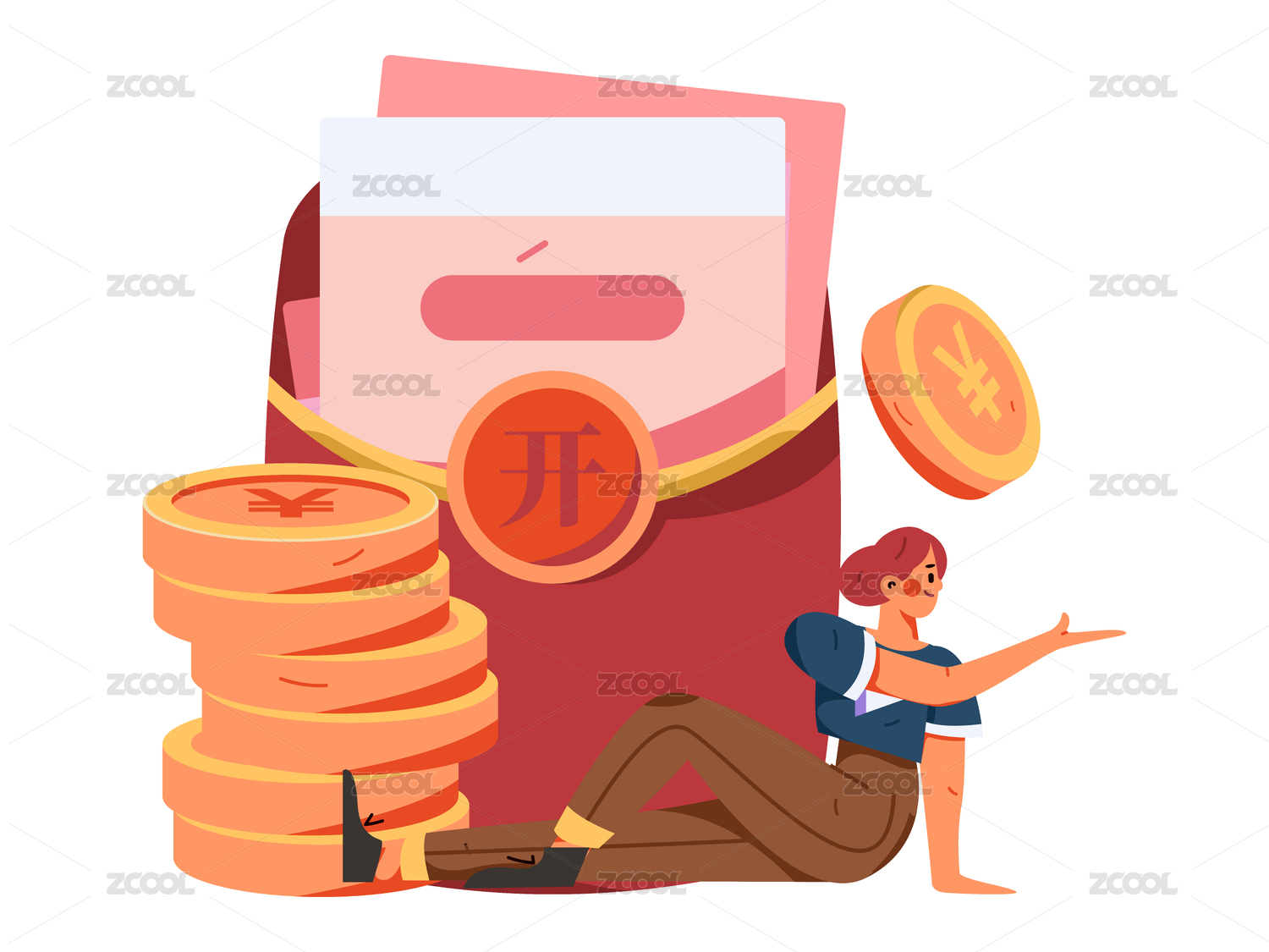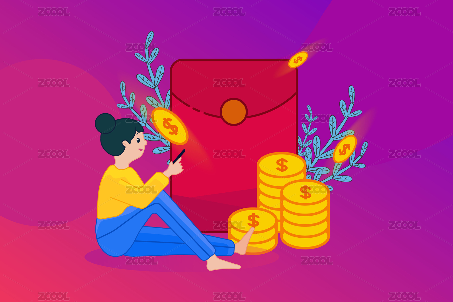 邀请好友获得奖励,抢红包优惠券矢量扁平插画