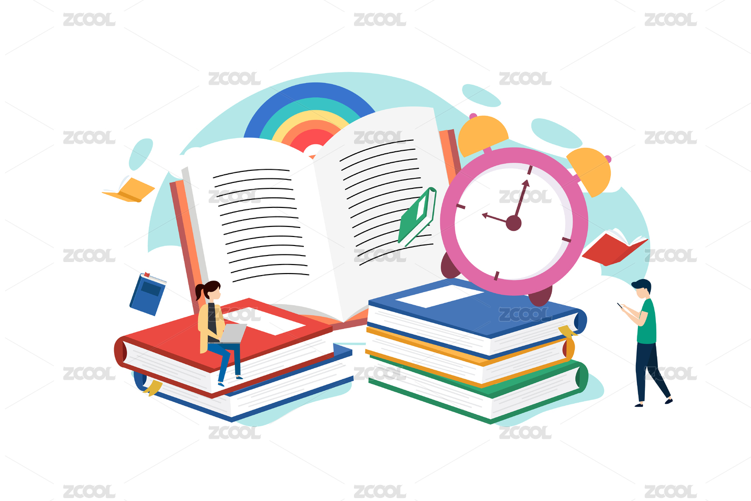 世界读书日阅读人物扁平矢量概念运营手绘插