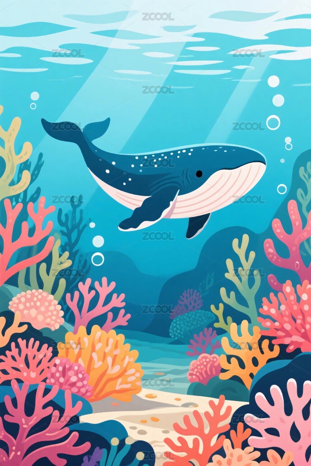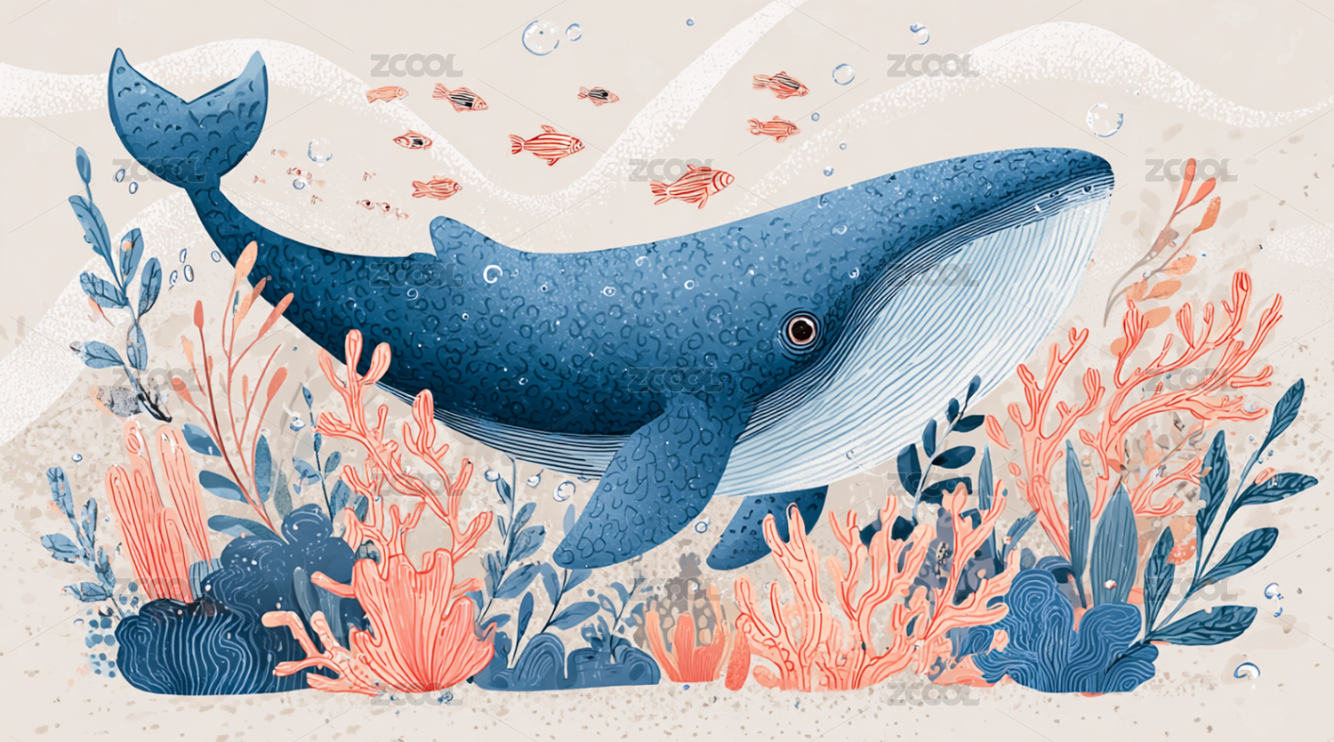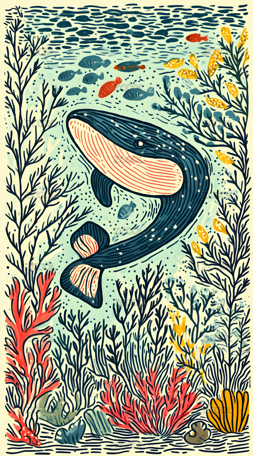 海洋珊瑚与鲸鱼插画