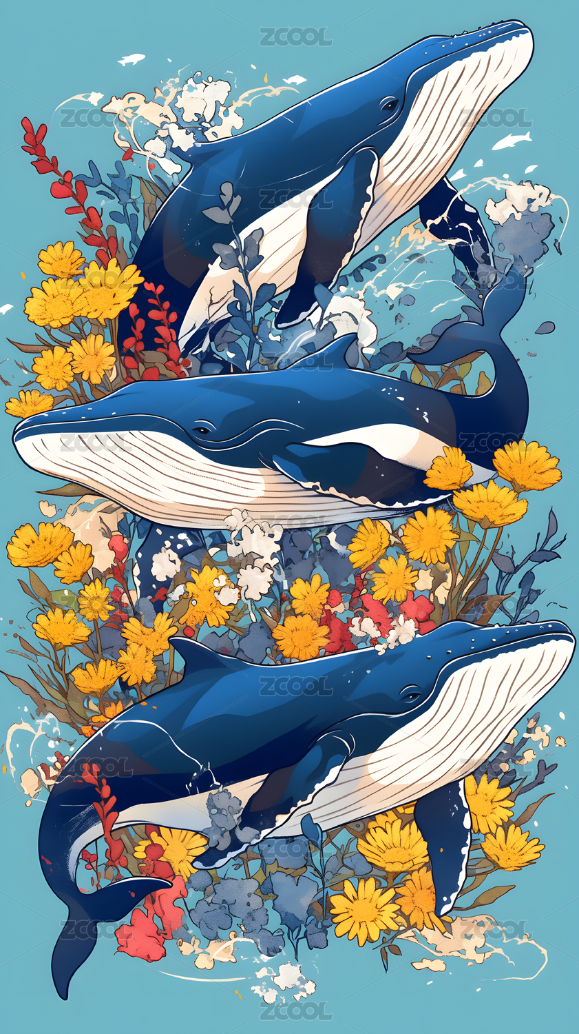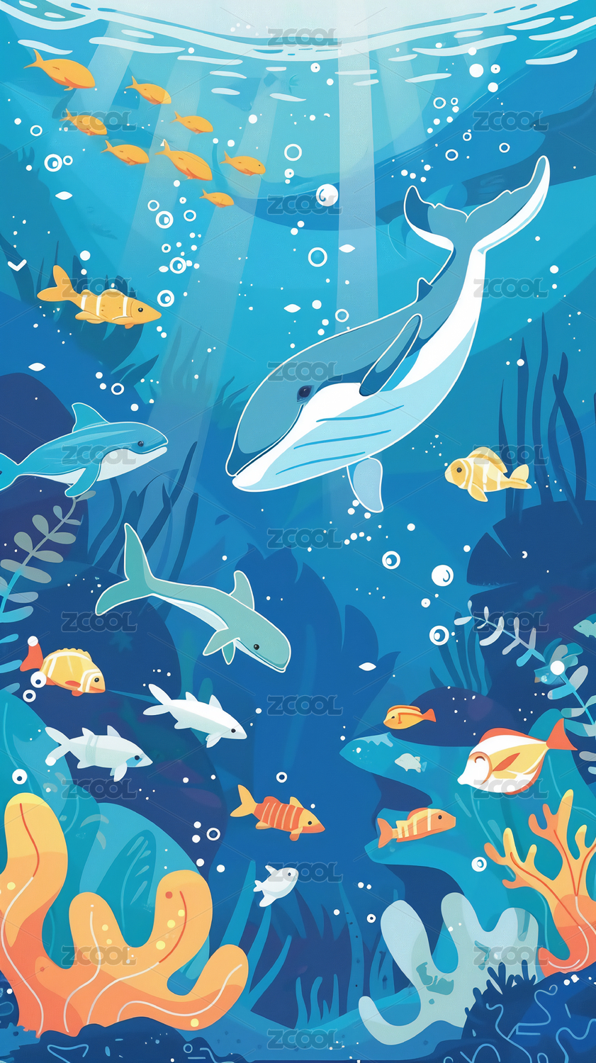 鲸鱼与海底世界创意插画