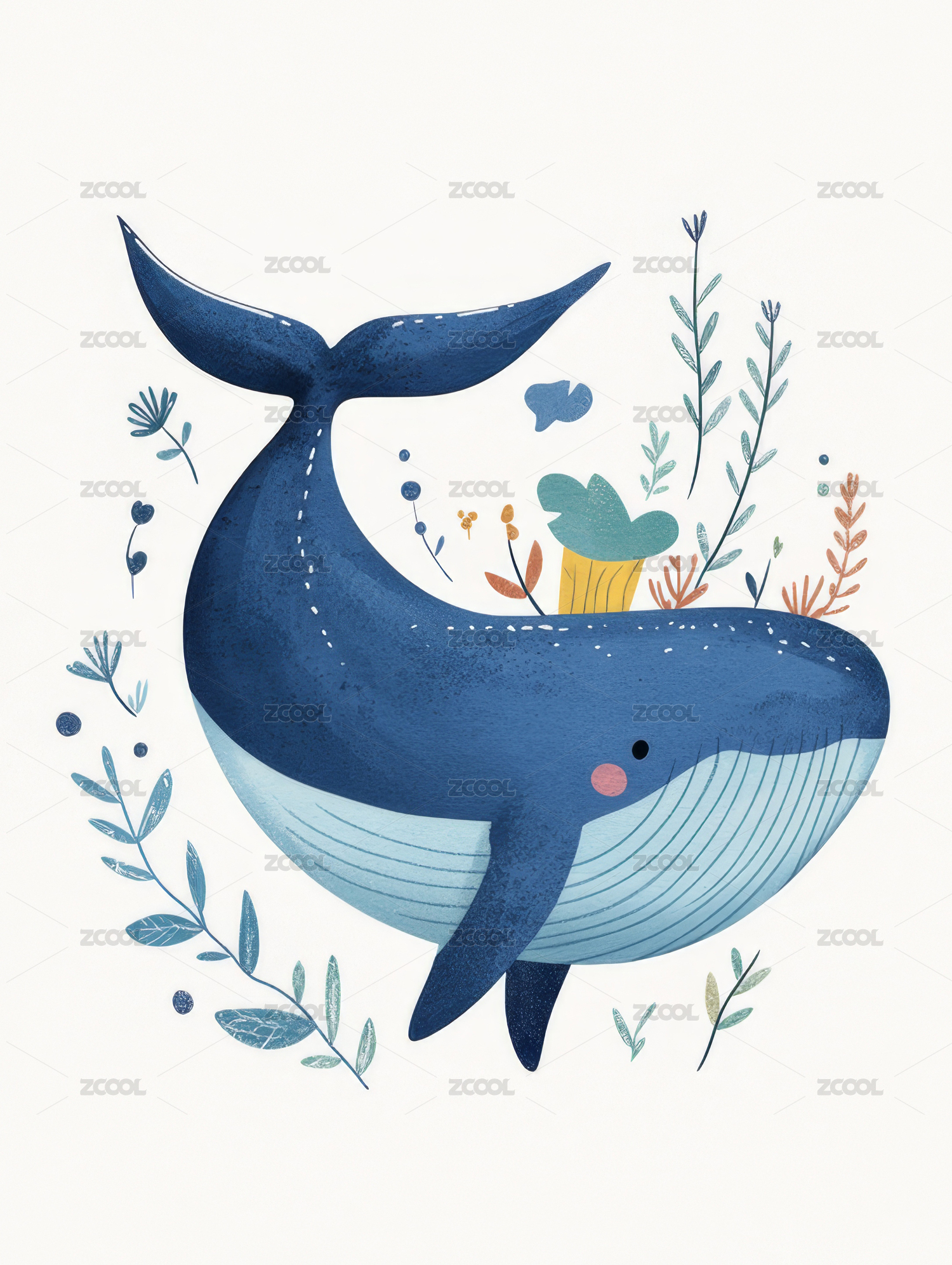 蓝色鲸鱼与海洋植物