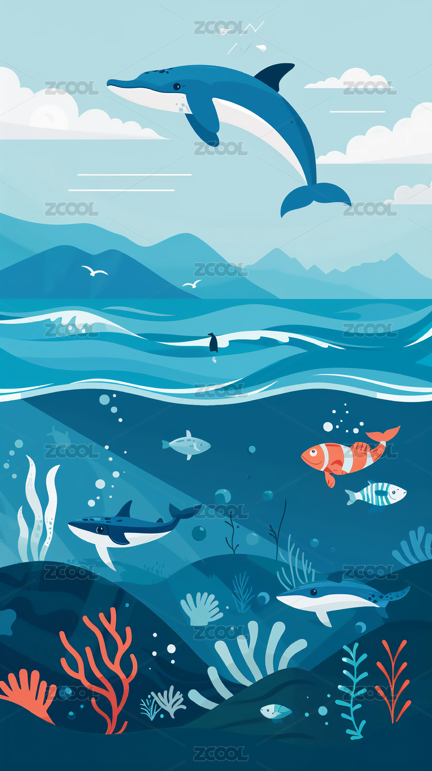 海洋生态保护环保海豚海洋生物插画