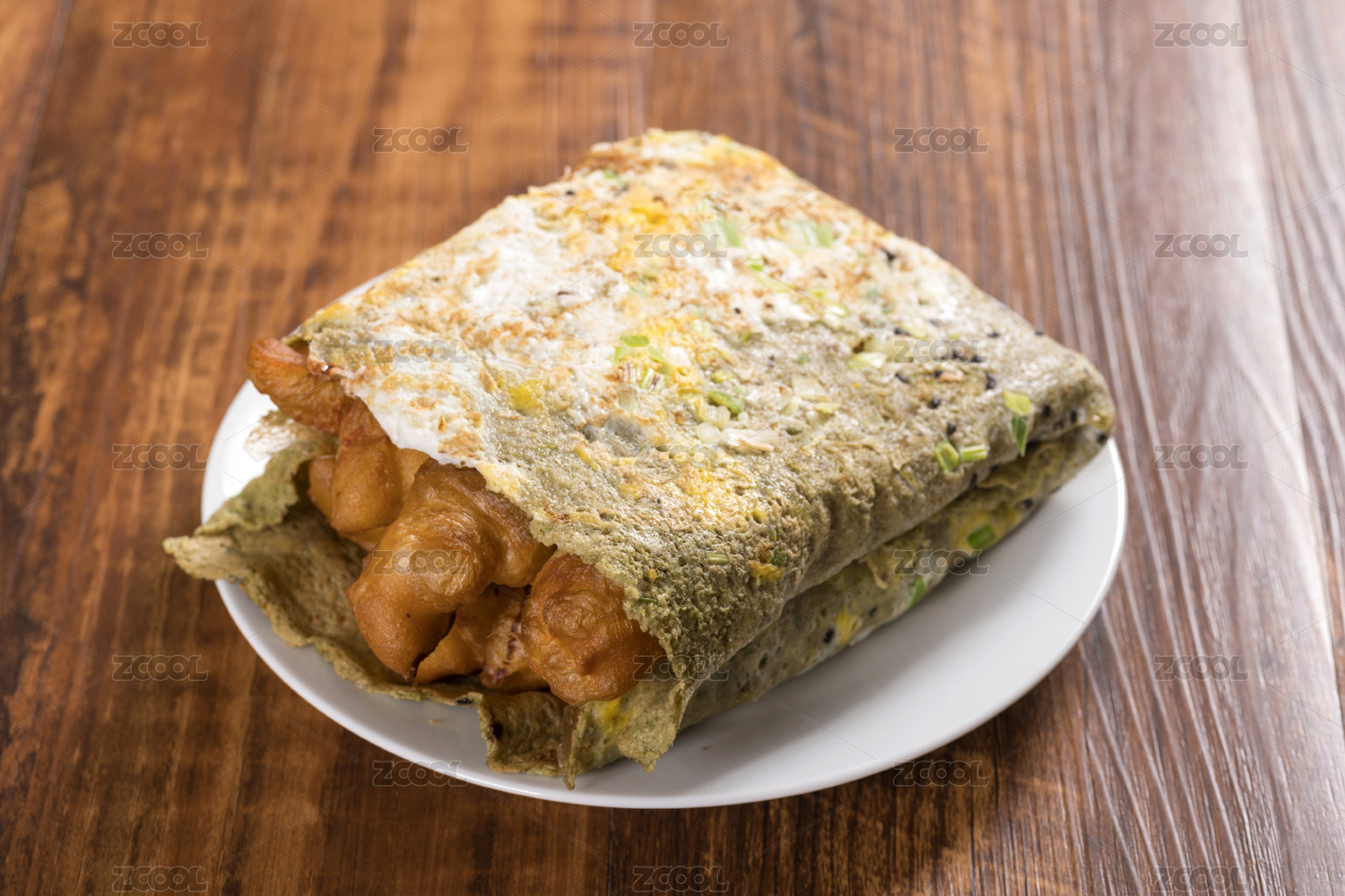 摊鸡蛋煎饼卷生菜火腿里脊肉