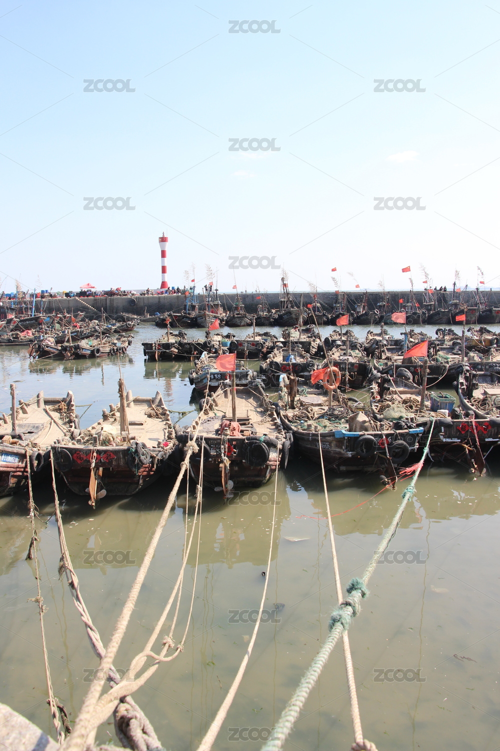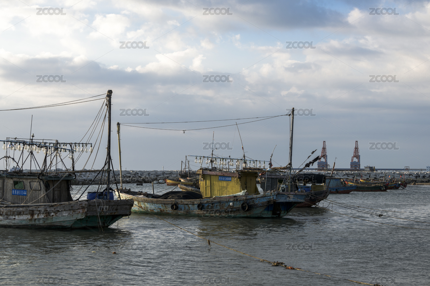 夏日中国辽宁省大连市码头旁停靠的渔船
