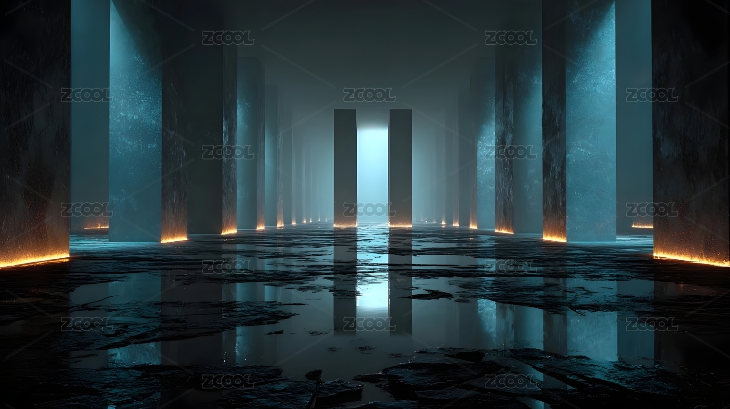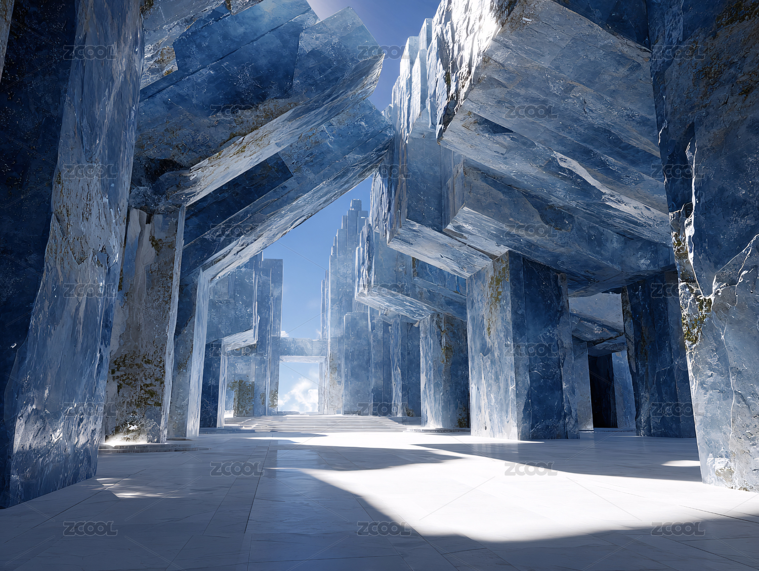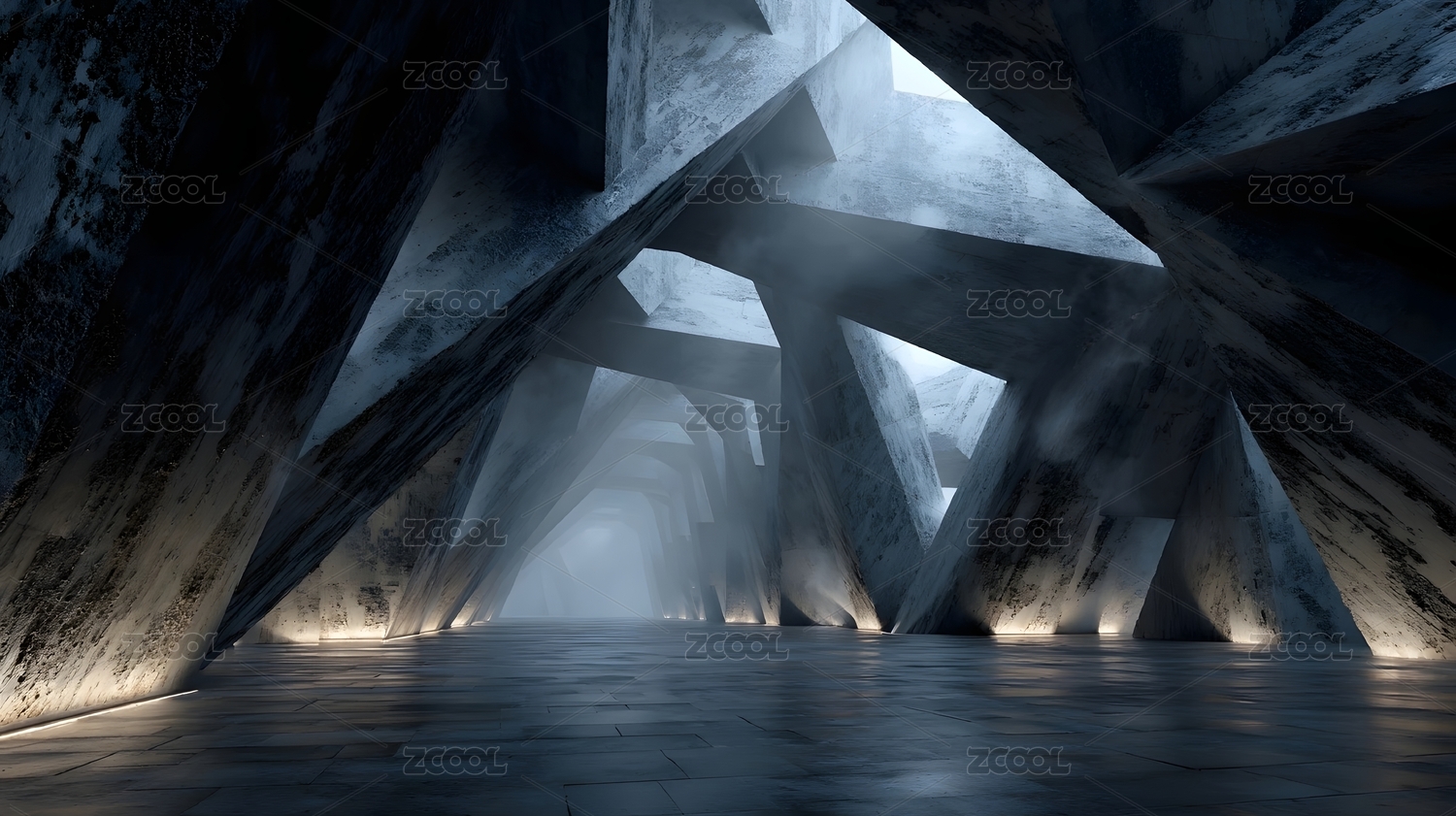 神秘黑色水晶宝石展台展厅3D洞穴空间场景