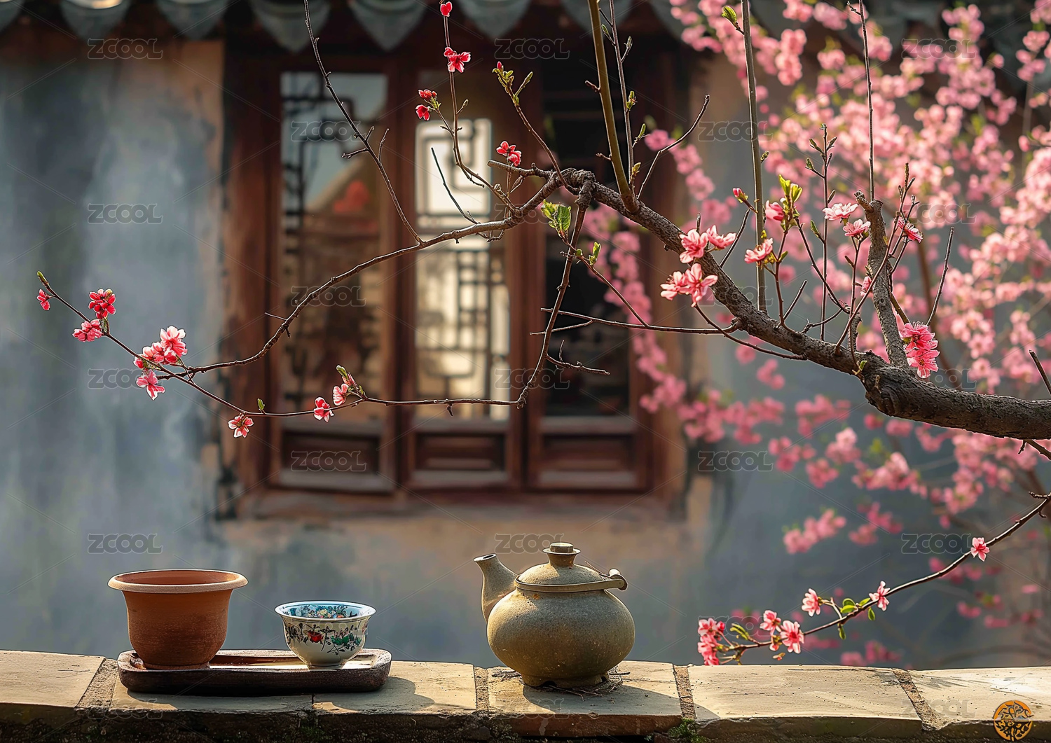 茶,茶碗和茶壶,中国风茶叶广告背景