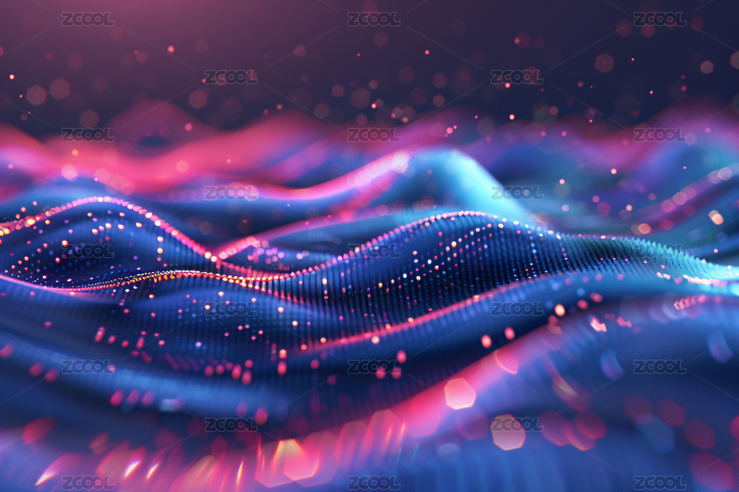 科技粒子蓝紫色渐变半色调几何波线光效图片
