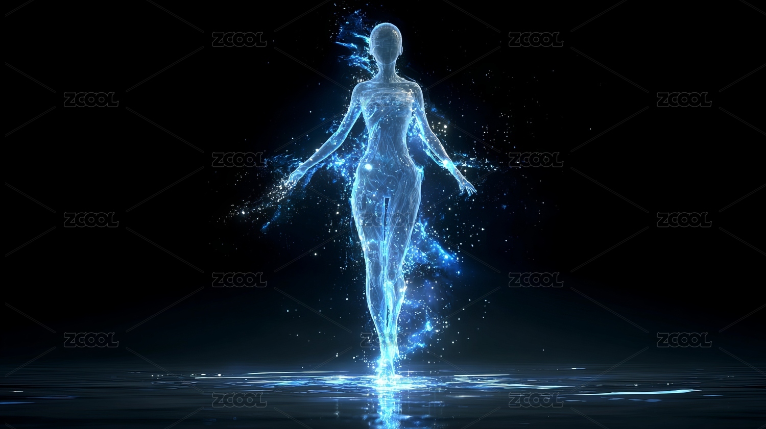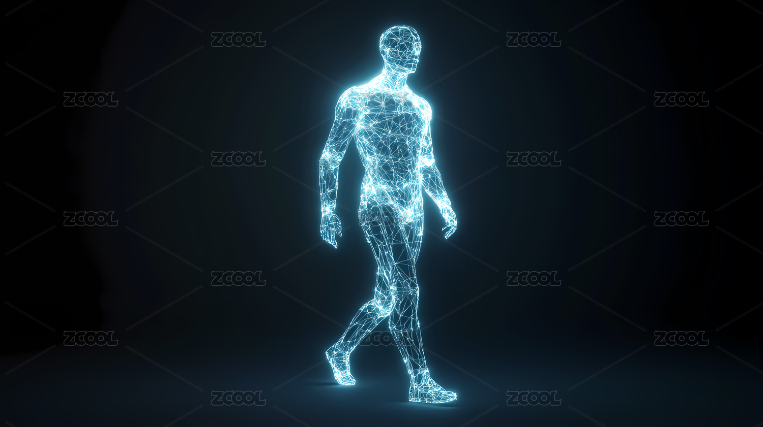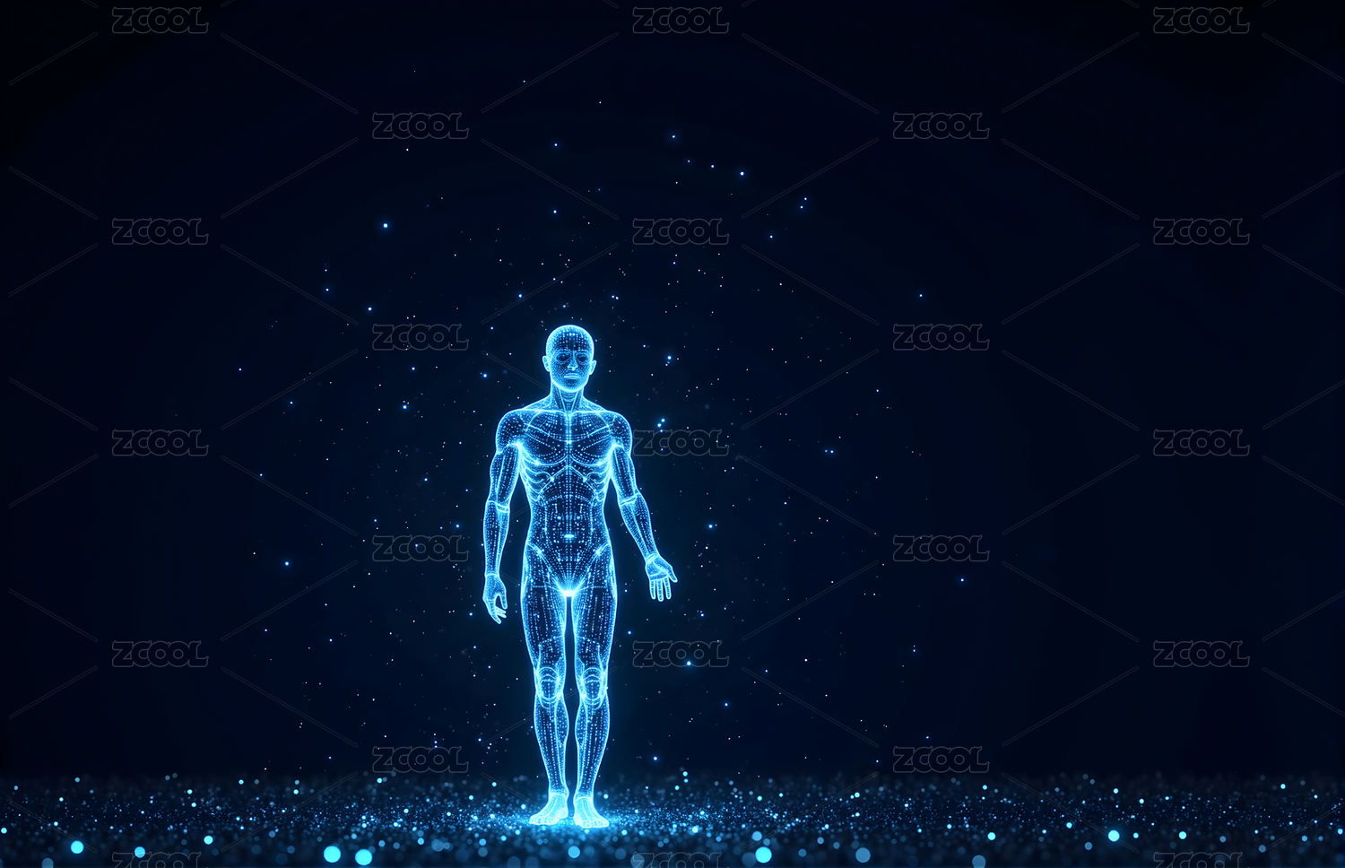 未来人工智能蓝色3D粒子智慧仿生人概念