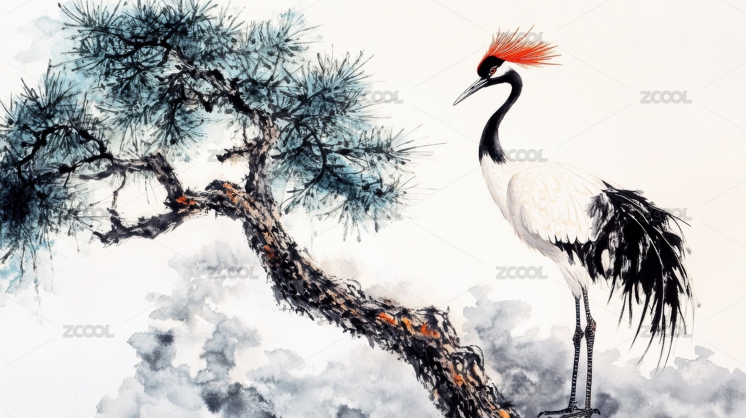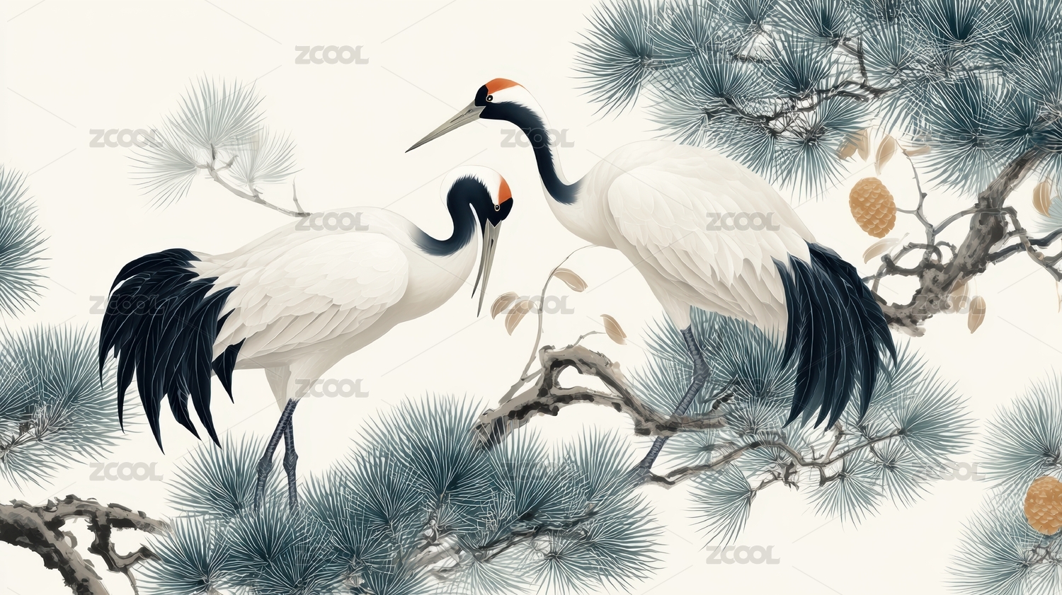 重阳节主题背景仙鹤丹顶鹤中国风国画工笔画