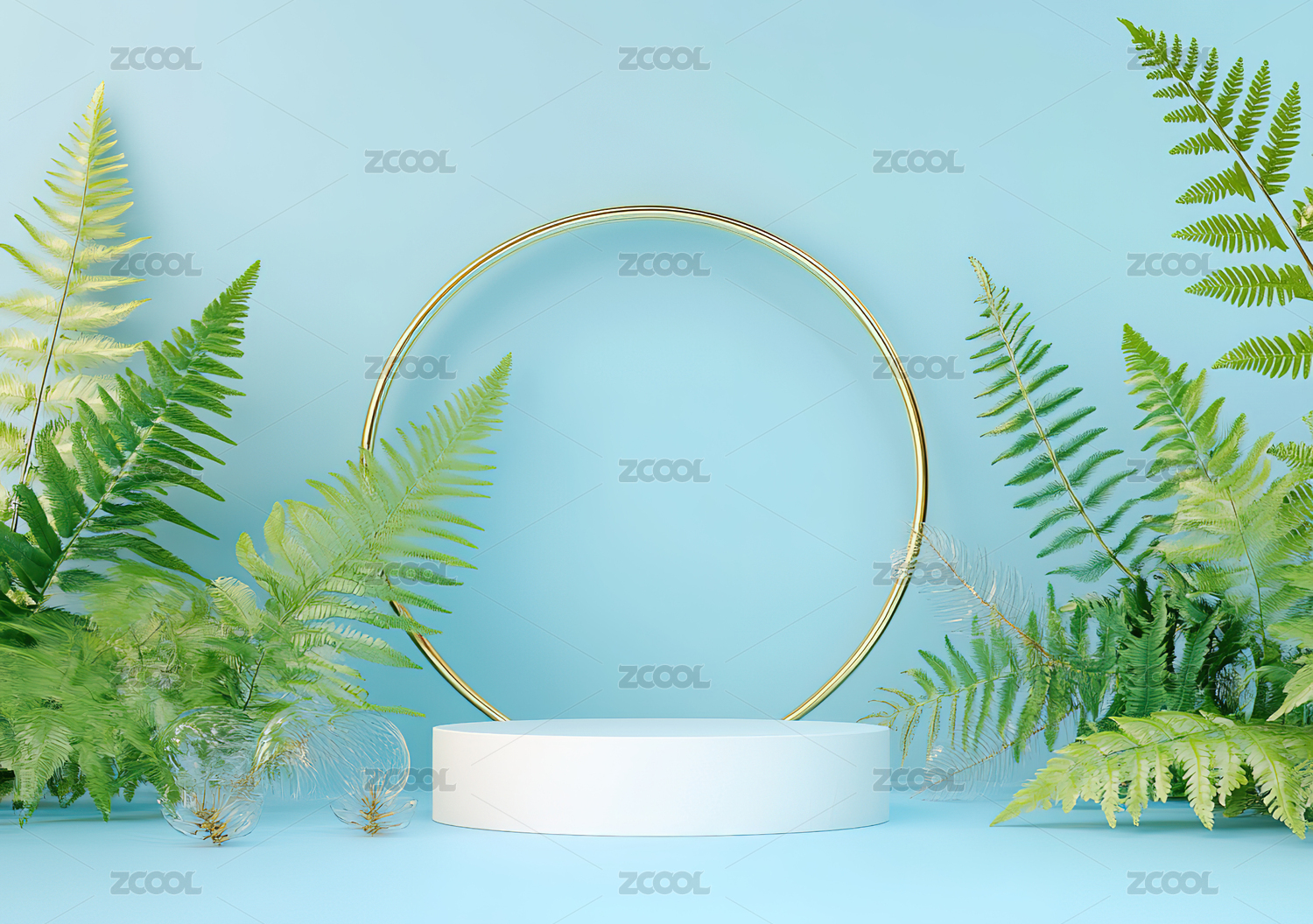 绿色背景下的装饰品和桌子上的叶子特写镜头