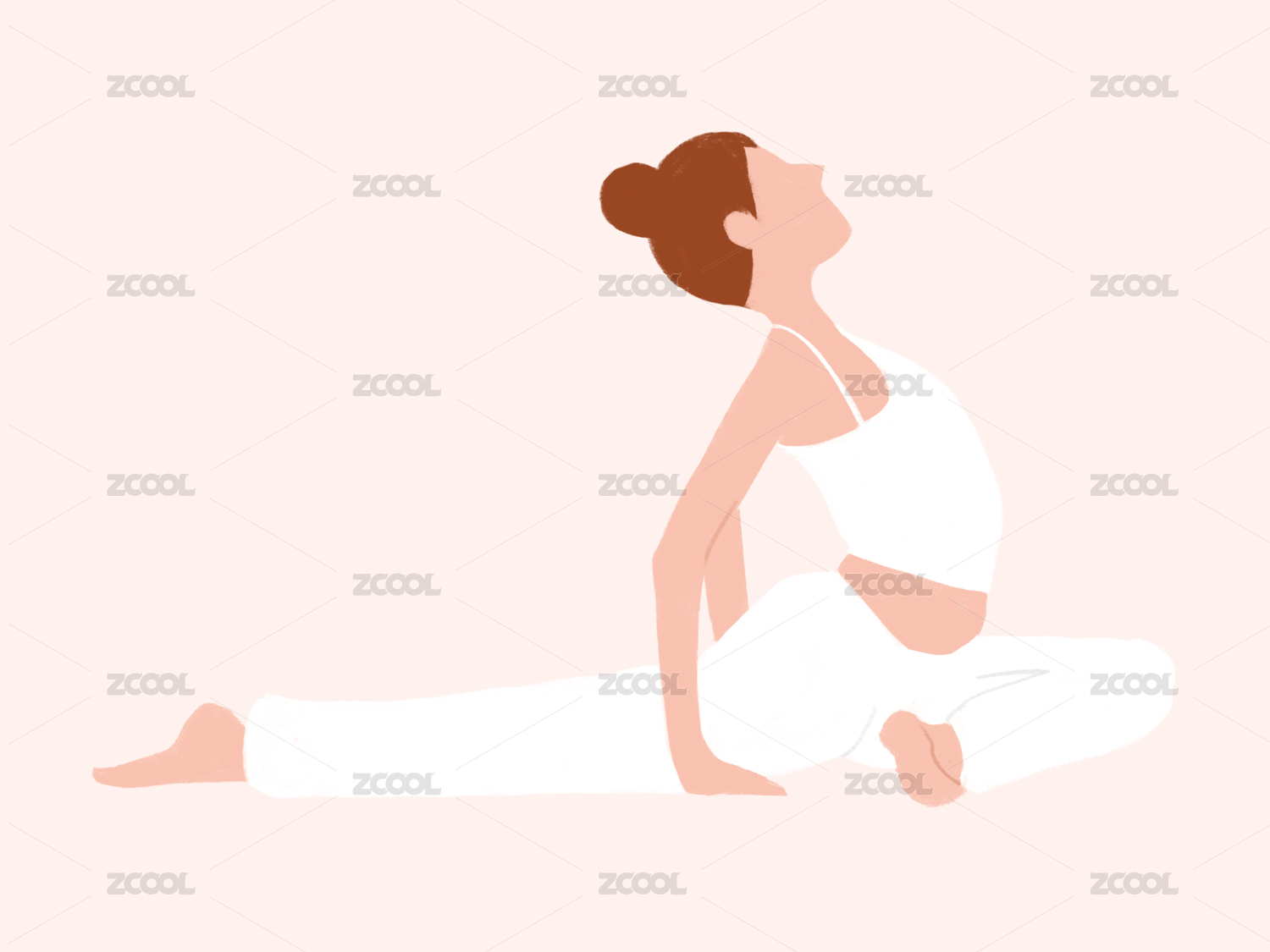 一个正在做瑜伽运动减肥减脂的丸子头女孩 简约插画素材