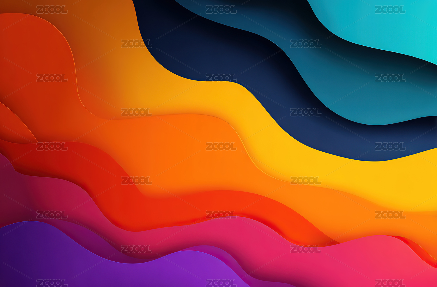 彩色波浪层叠抽象图案