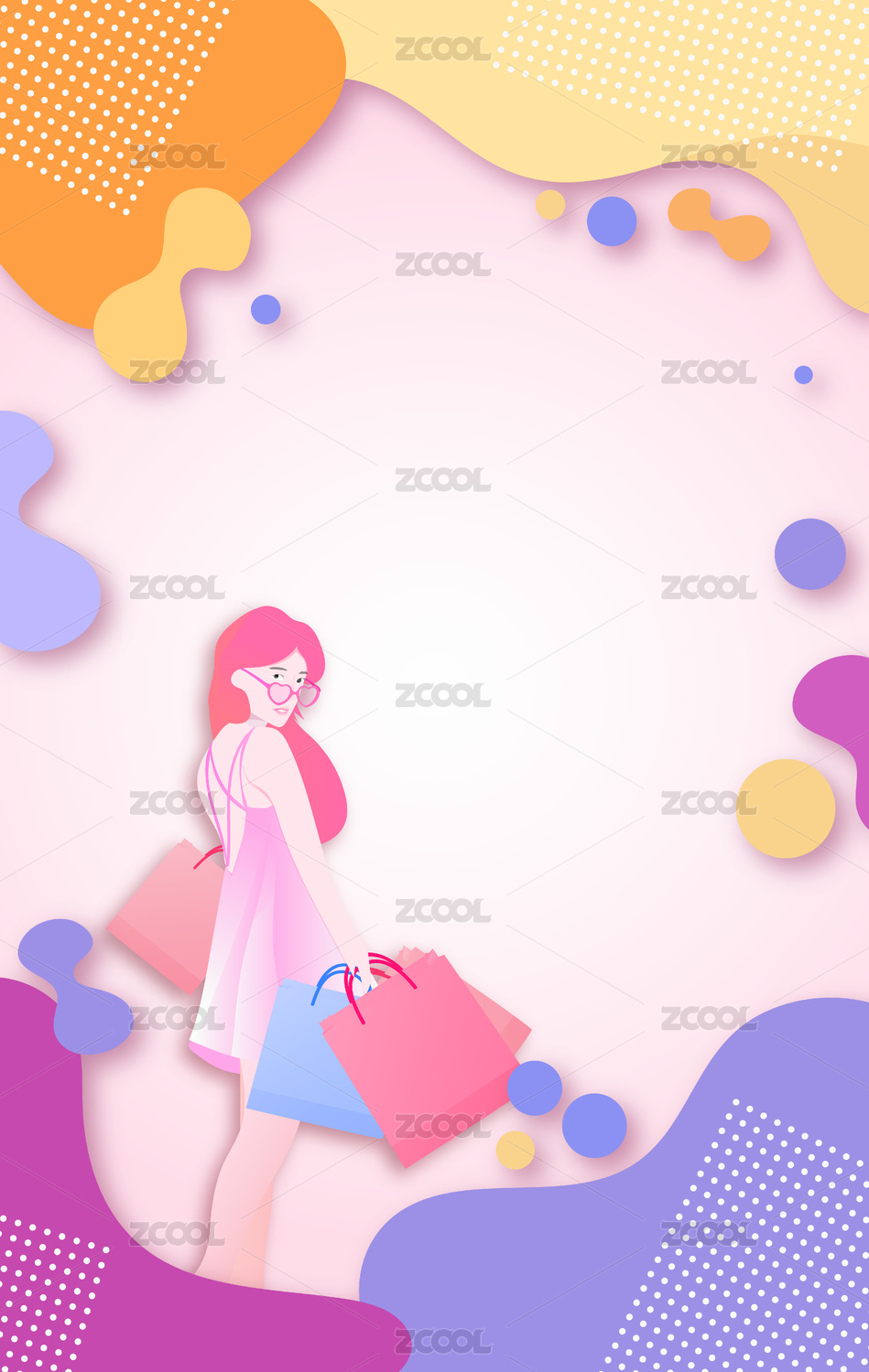 柔色渐变插画购物宣传海报竖版