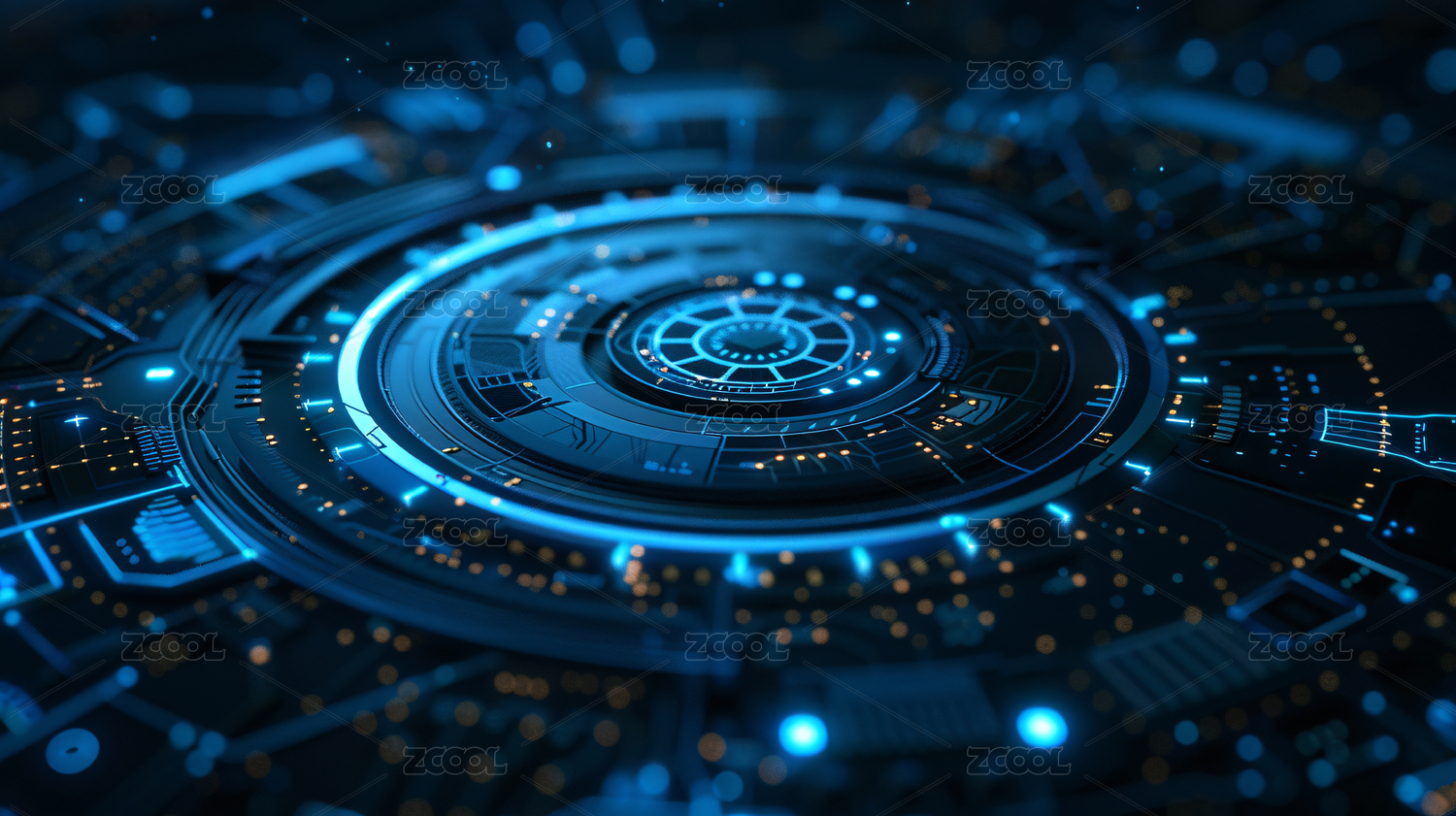 蓝色圆形光环电路板