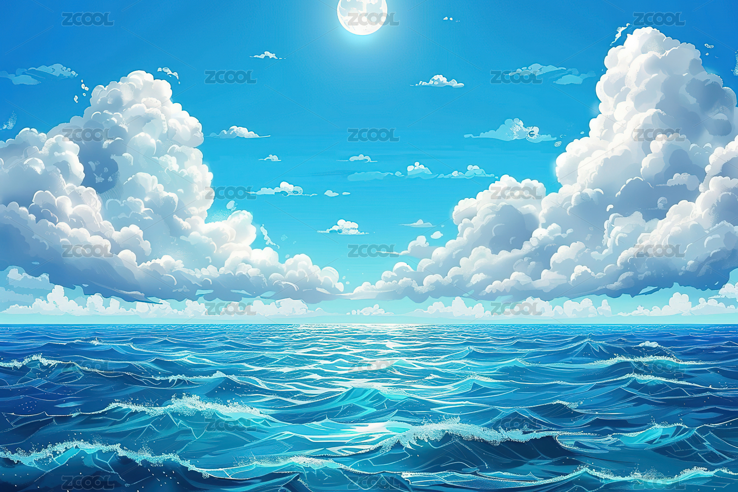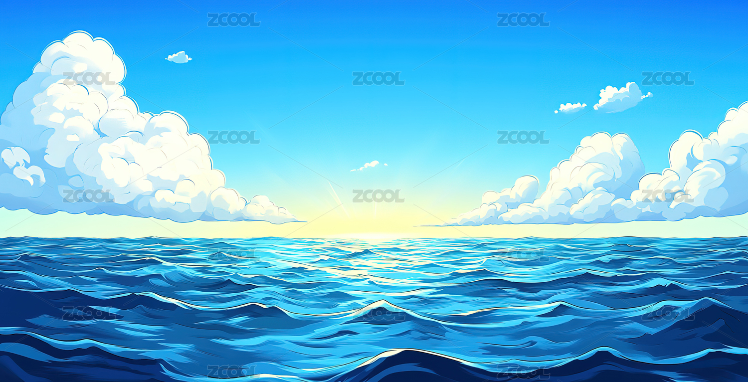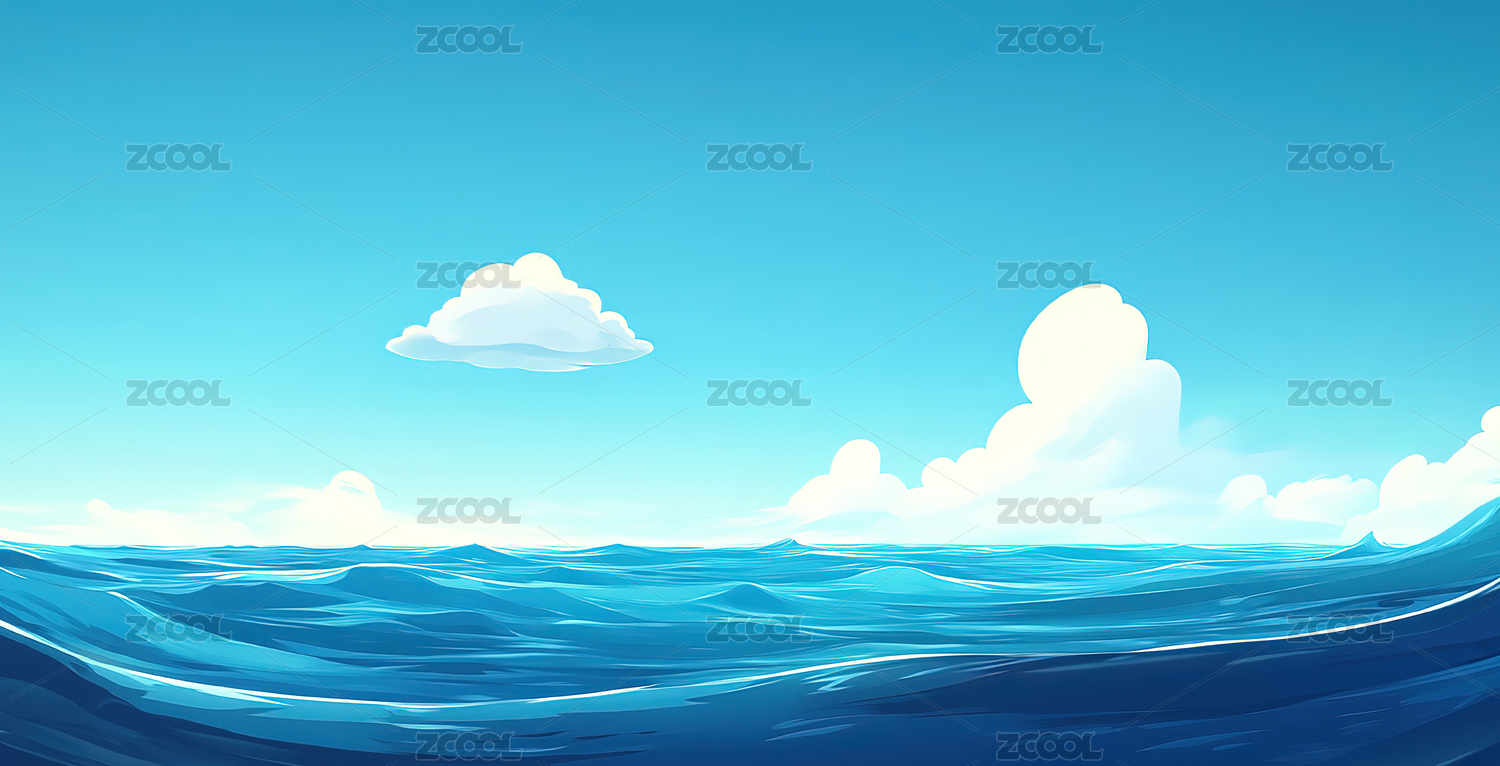 蓝天白云下美丽的大海