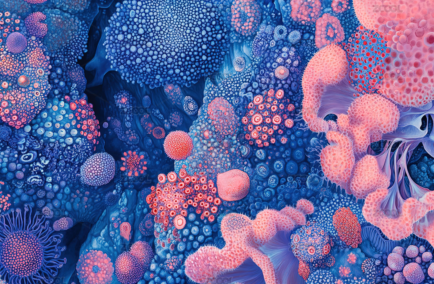显微镜下细菌病毒特写海洋生物科学概念插图