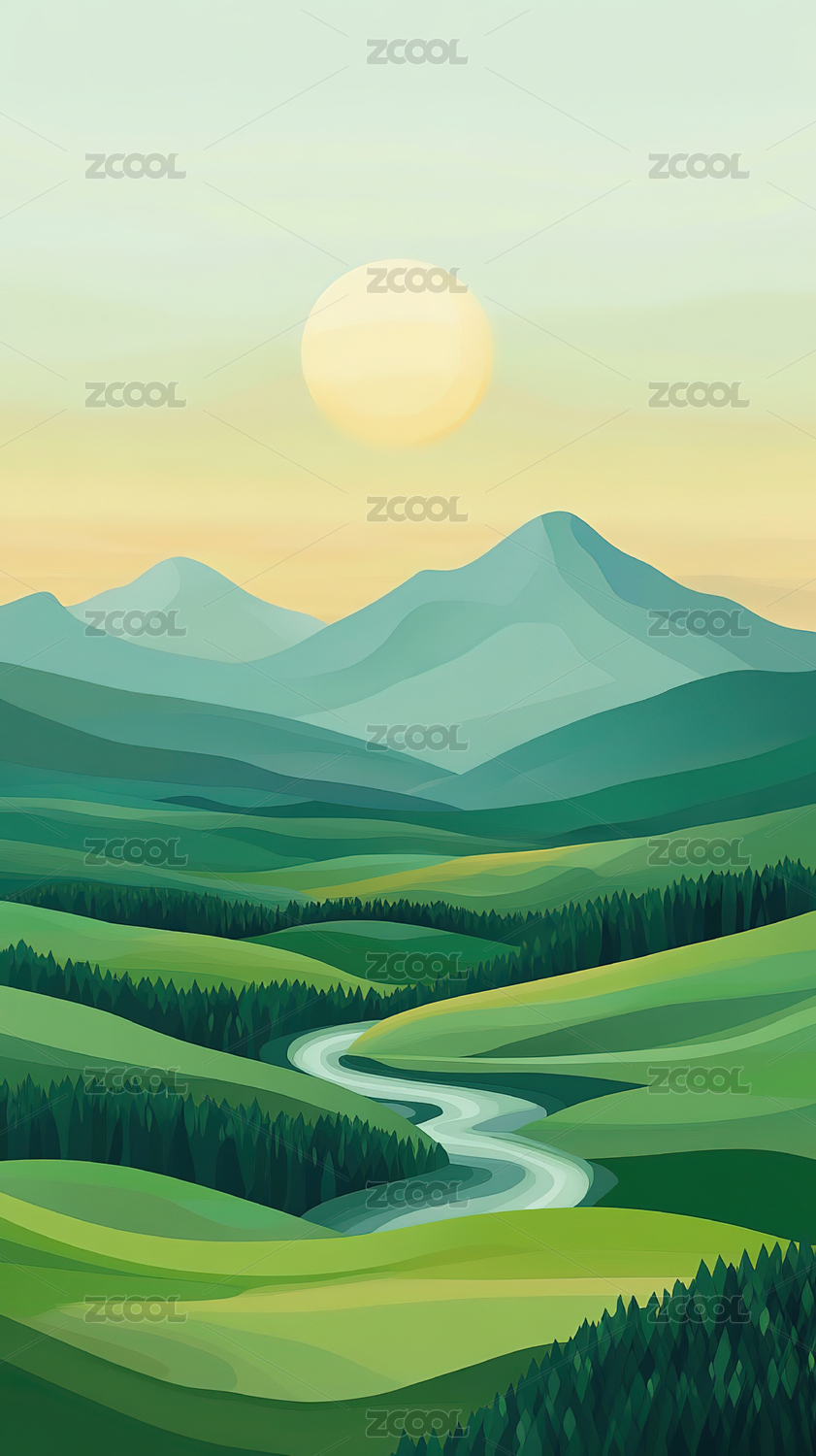 河谷手绘插图背景