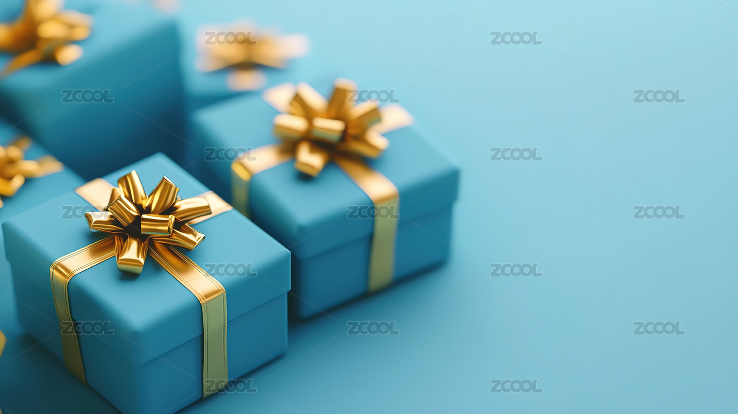 蓝色礼盒与金色蝴蝶结