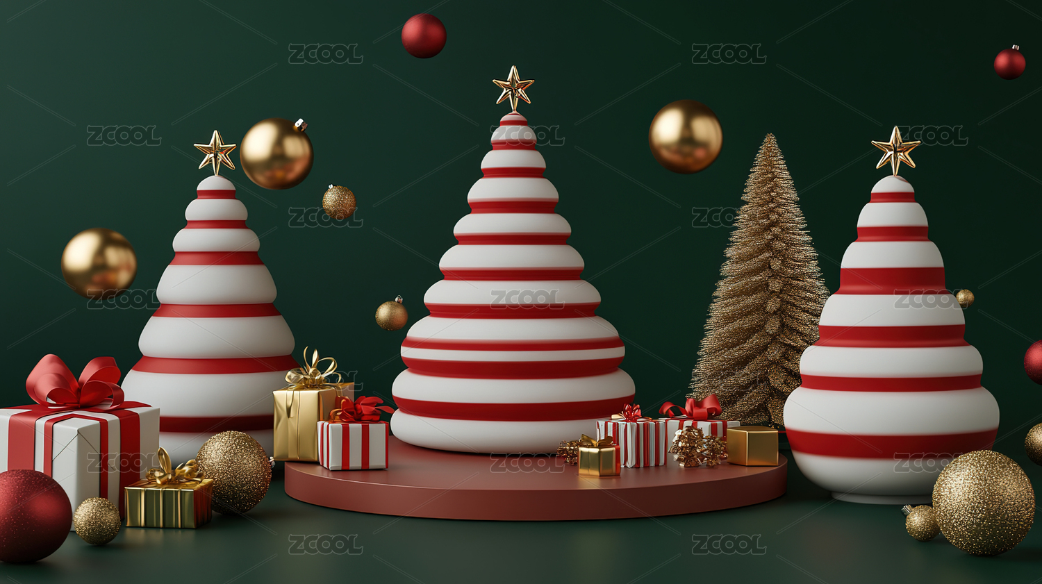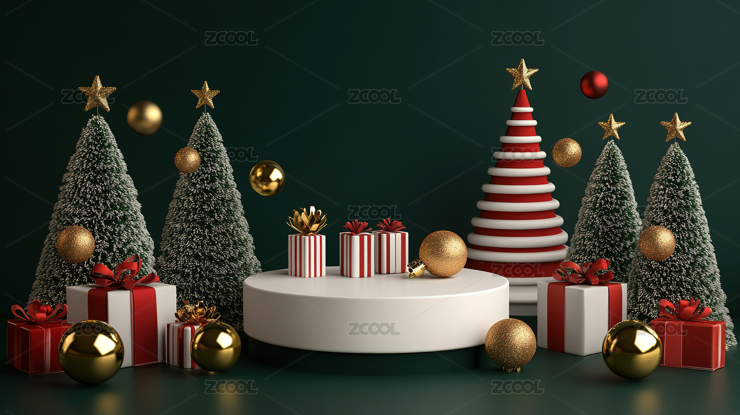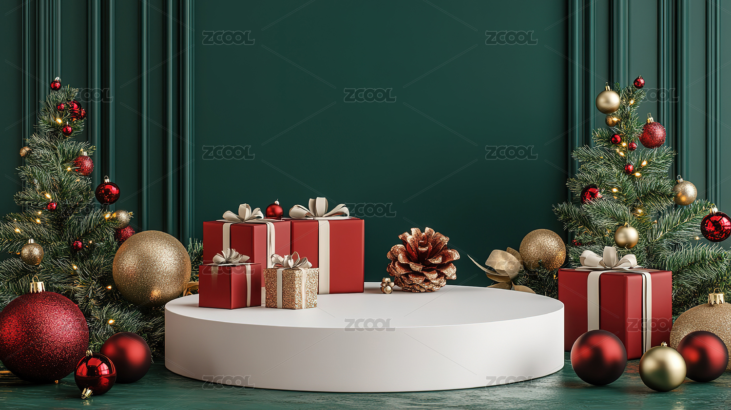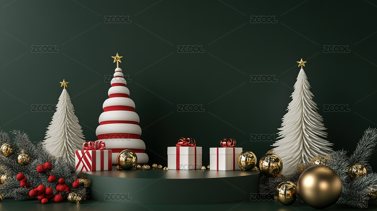 红绿色系圣诞节产品展示台