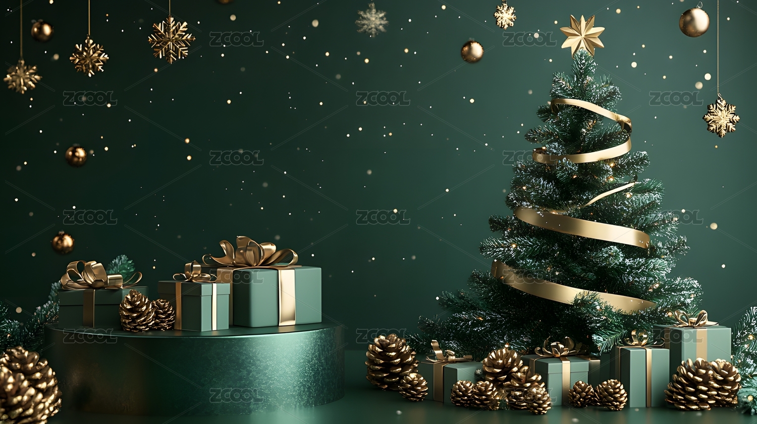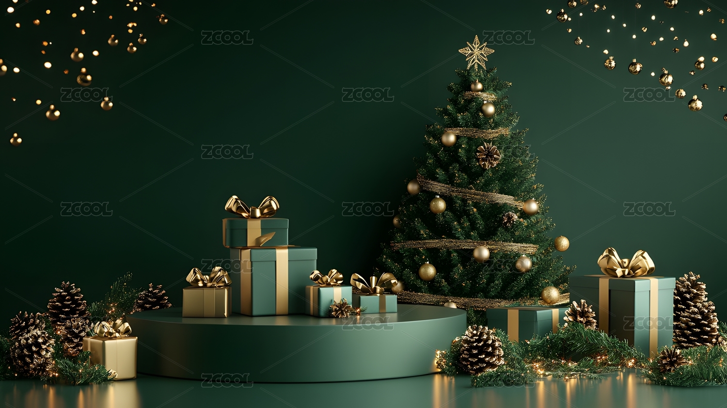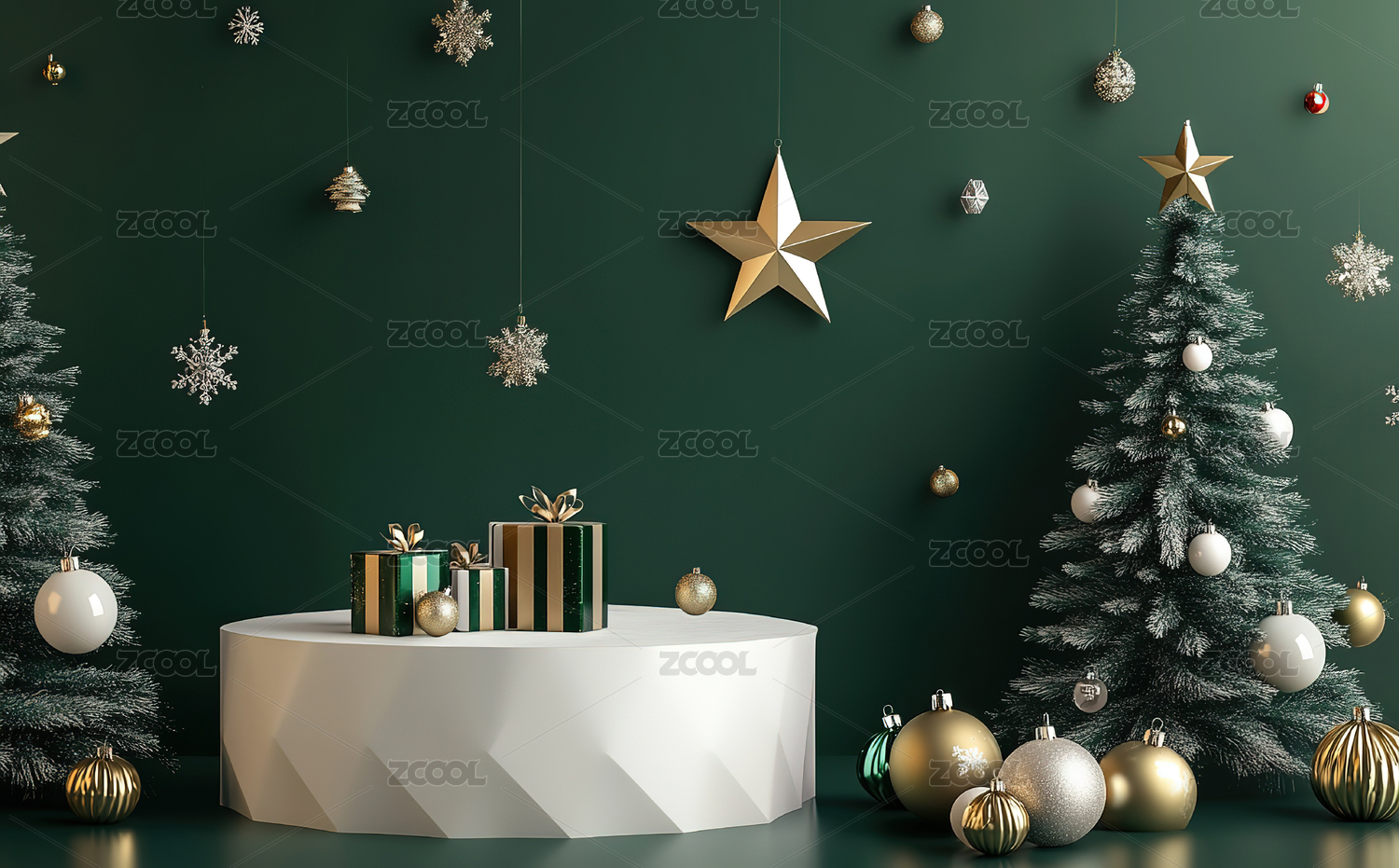 绿色系圣诞节产品展示台