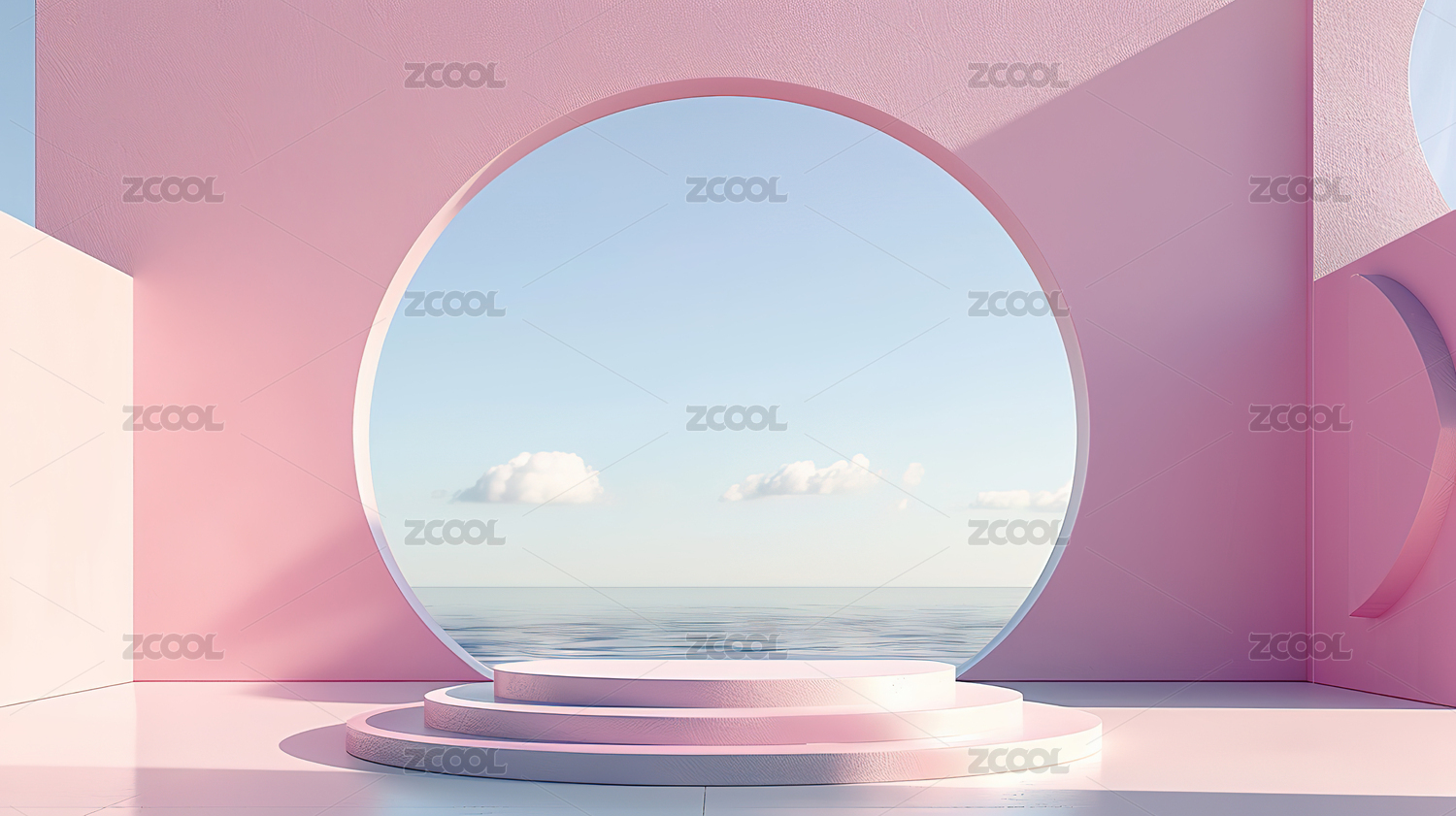 粉红色产品展示台与云彩天空