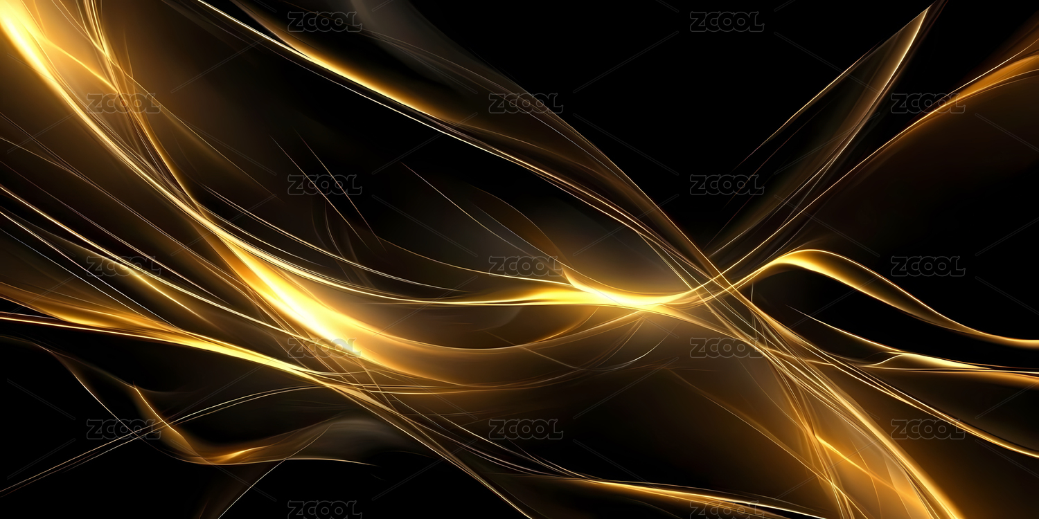 数字技术黄色发光玻璃漩涡几何水平海报背景