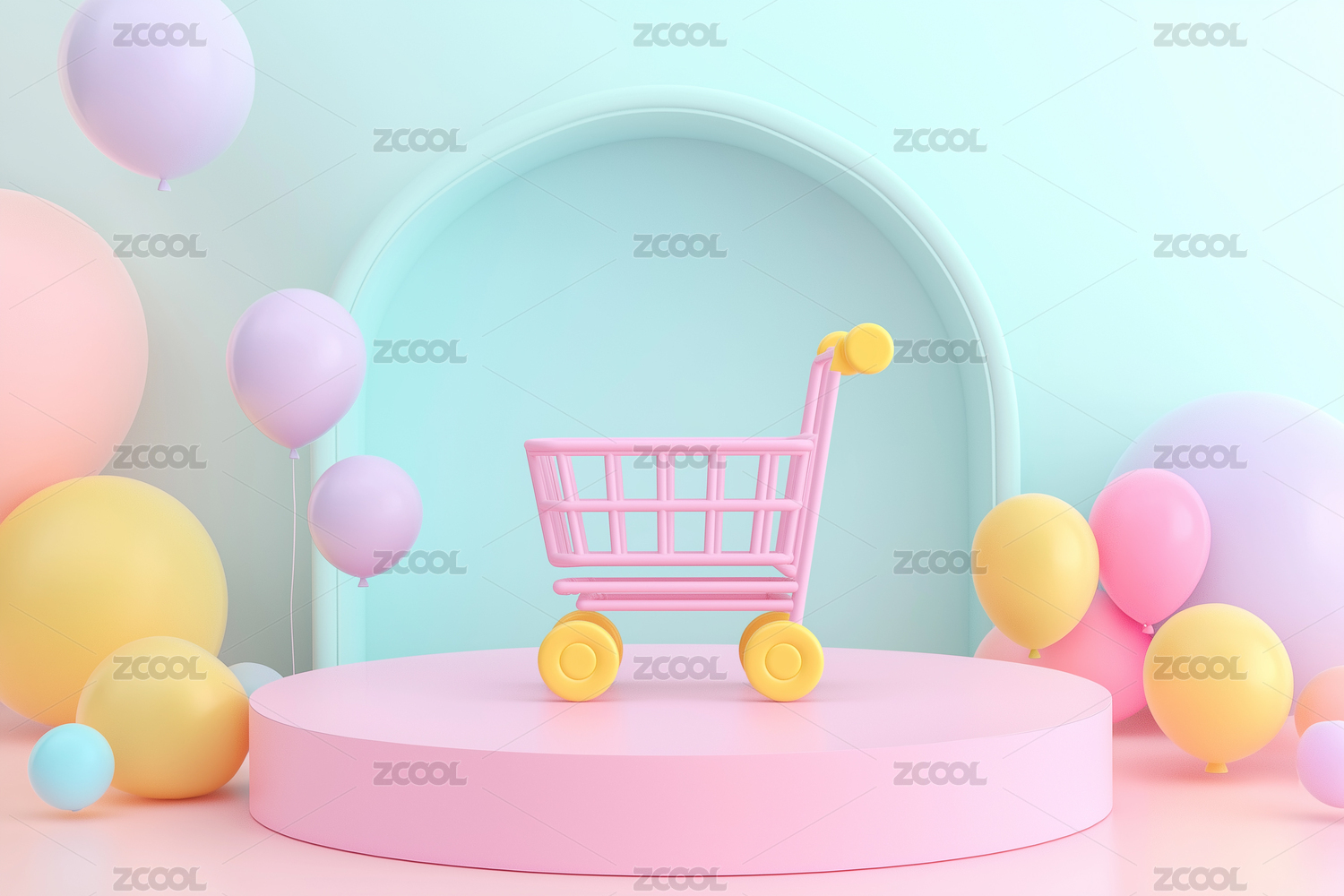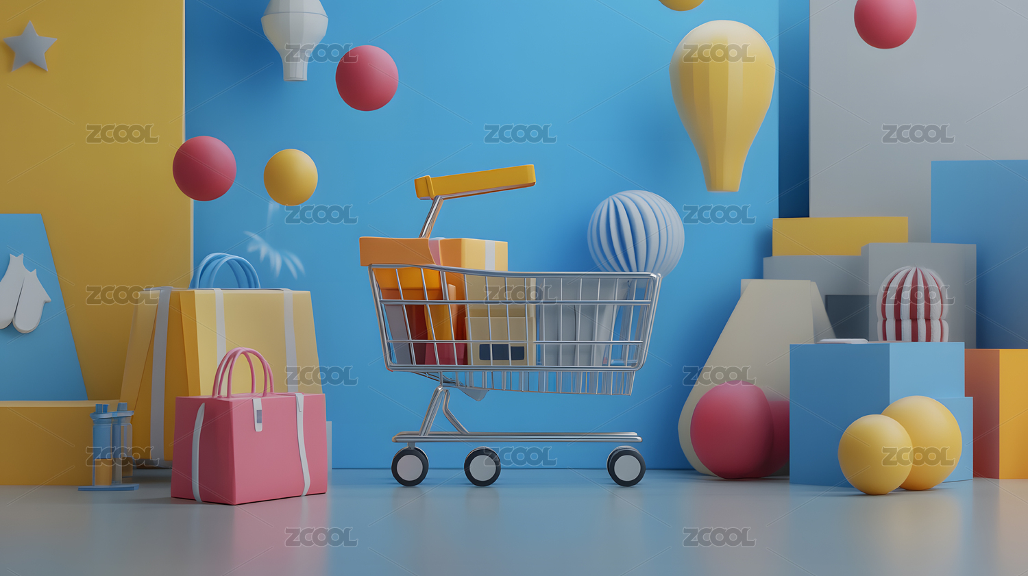 无人,AI数字艺术,礼物,电子商务,庆祝,插画,购物车,促销,三维图形,购物