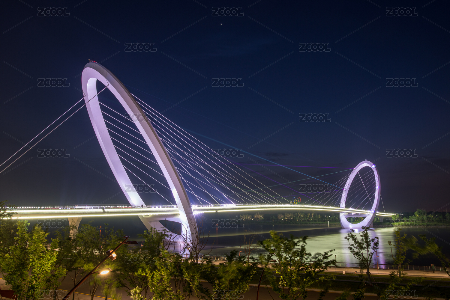 中国江苏南京地标建筑南京眼步行桥建筑夜景