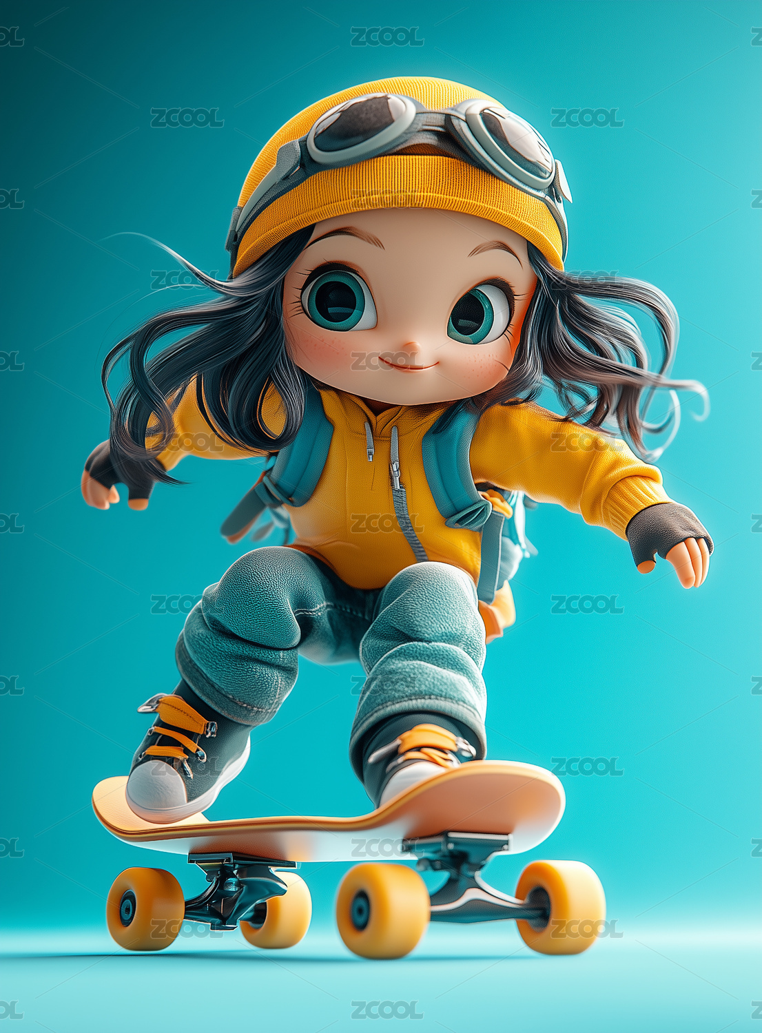 冬季雪地滑雪的男孩女孩3D卡通人物插画