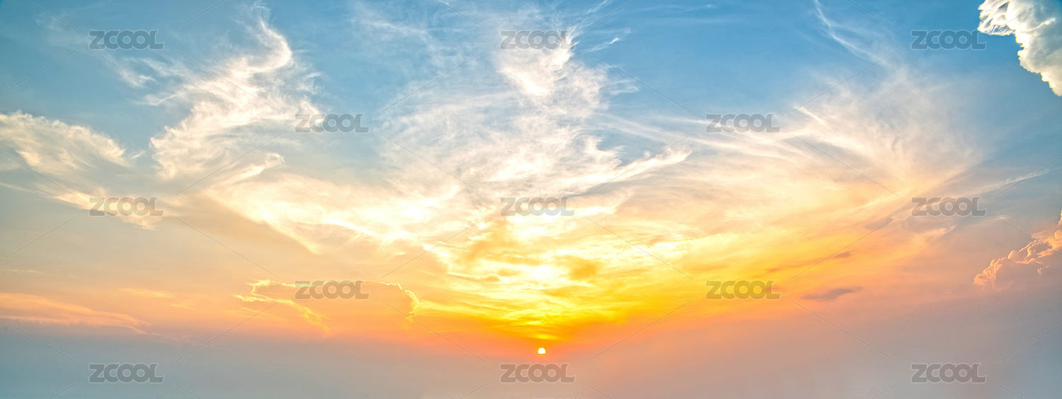 傍晚晴朗天空,蓝天白云为背景的晚霞