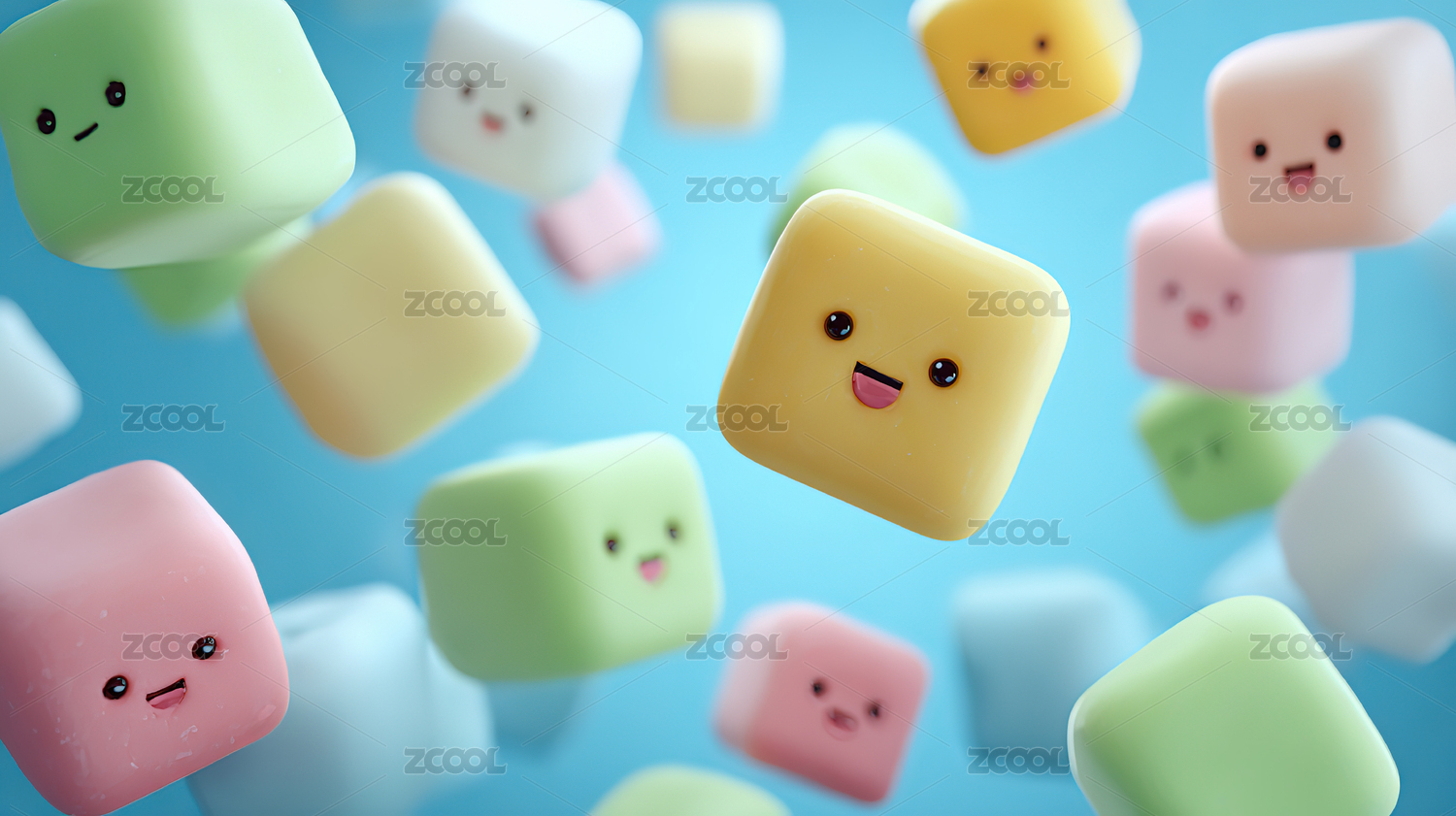 拟人糖果色拟人笑脸橡皮3D卡通立体插画