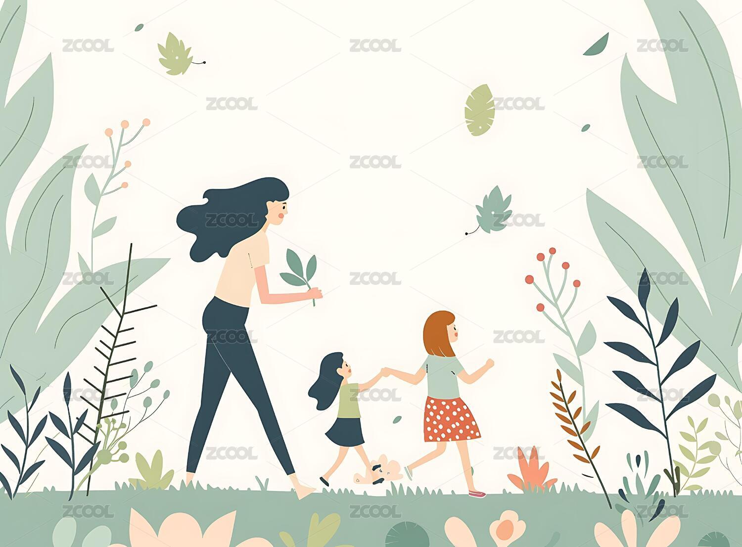 户外,自然,剪影,艺术,优雅,连接,插图,母亲,女儿,行走