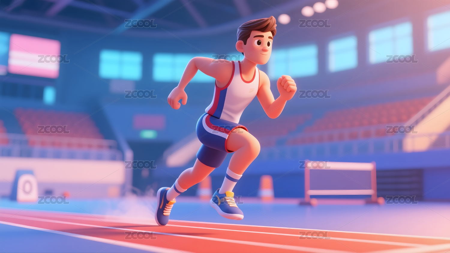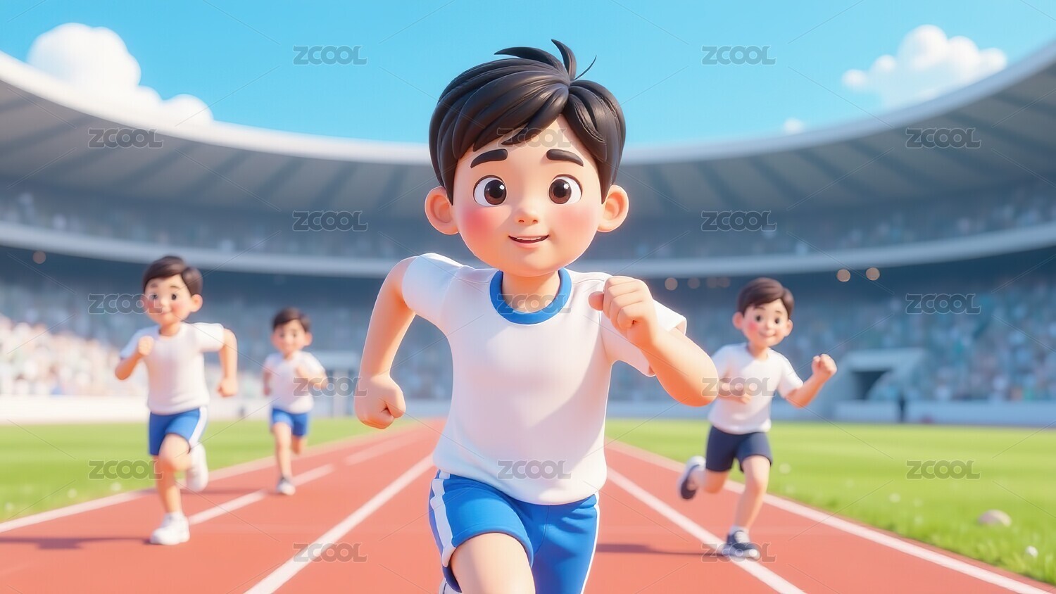 3D,卡通,可爱,插画,黏土,男孩,运动员,体育,跑步,赛跑