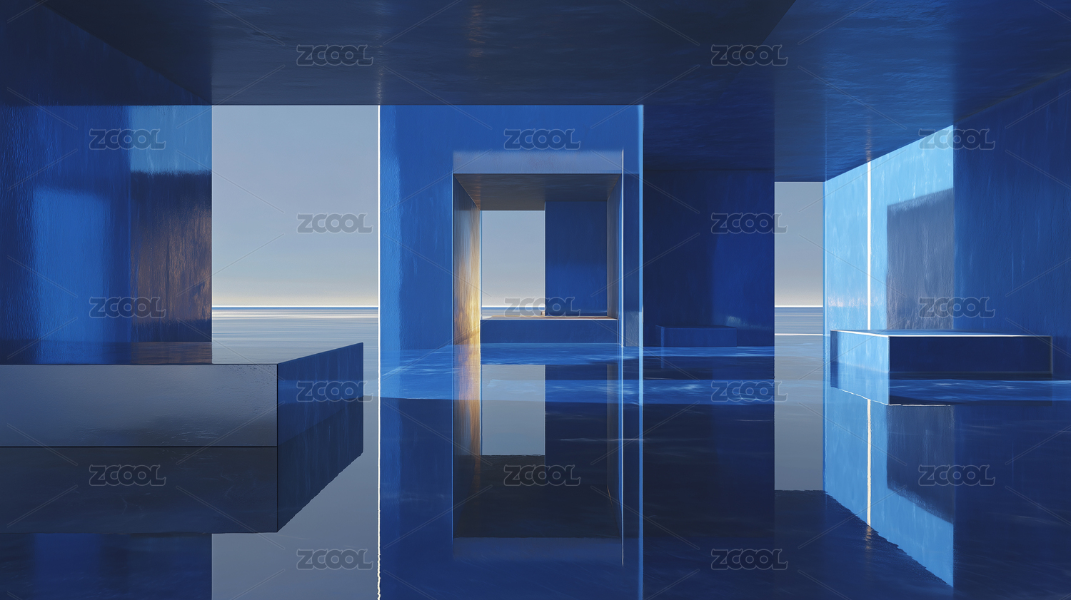 抽象,空间,矩形,光,发光,蓝色,人造空间,简约