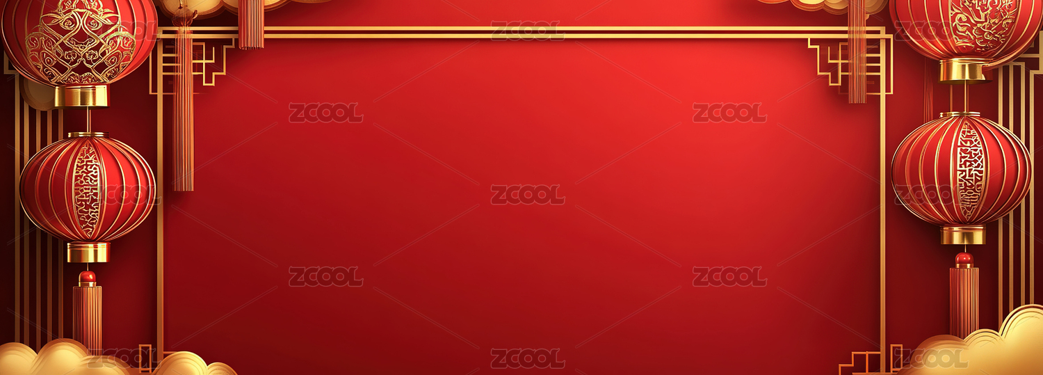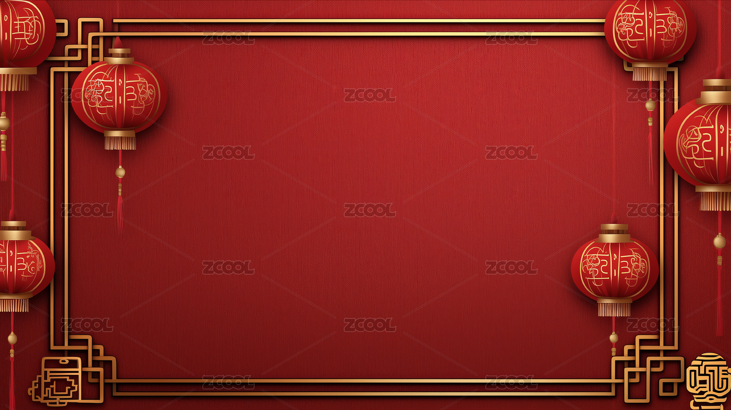 暗红色屋檐、墙壁、梅花、梅花枝、灯笼构建的中国风纹理背景.