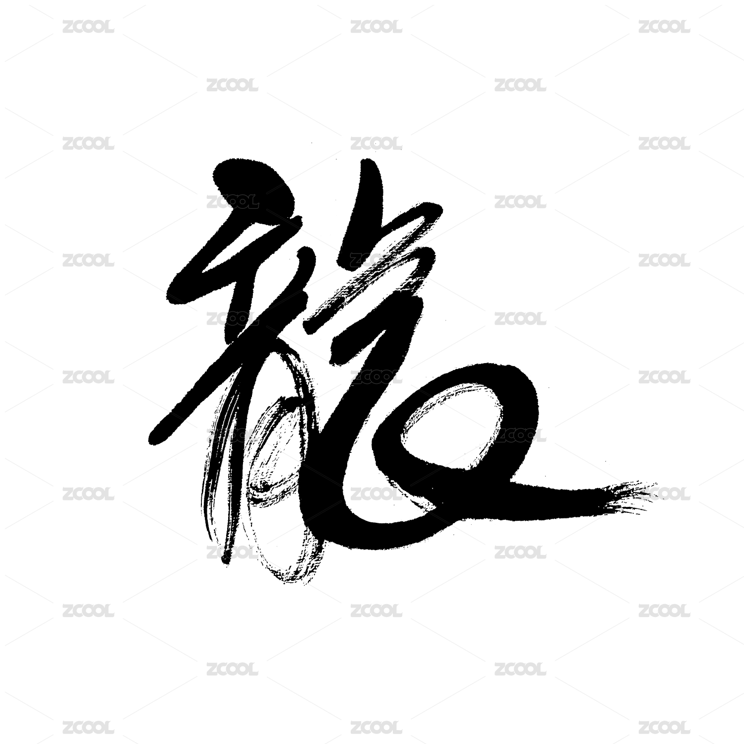 2024年龙年龙字中国风水墨书法