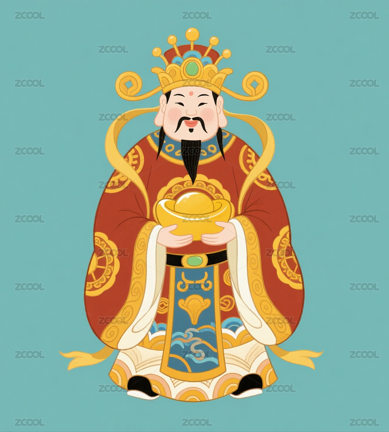 DXCZ202402,财神,神话,人物,春节,民俗,招财进宝,发财,金元宝,铜钱