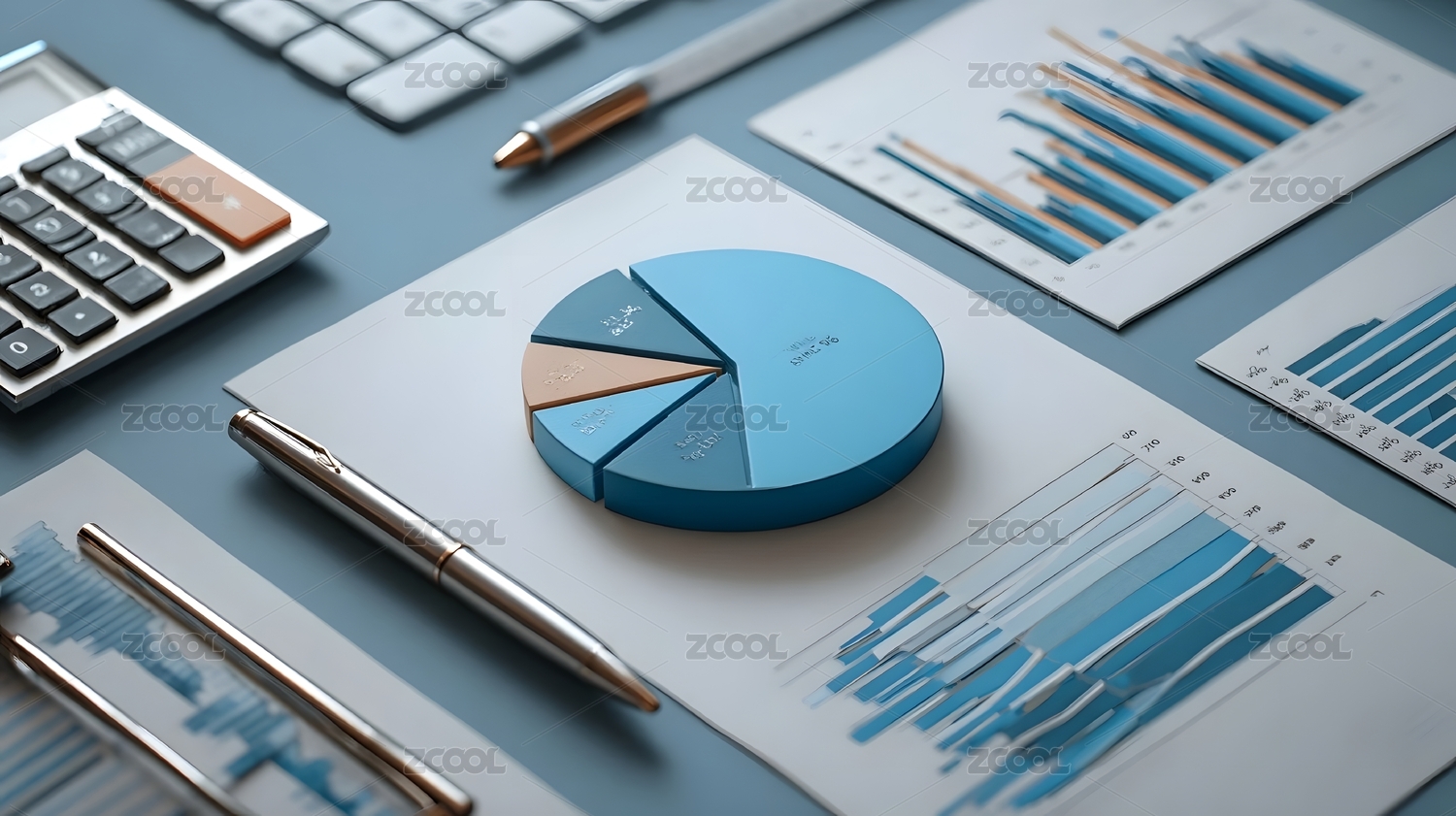 金融图表文档特写,色彩缤纷的饼图柱状图