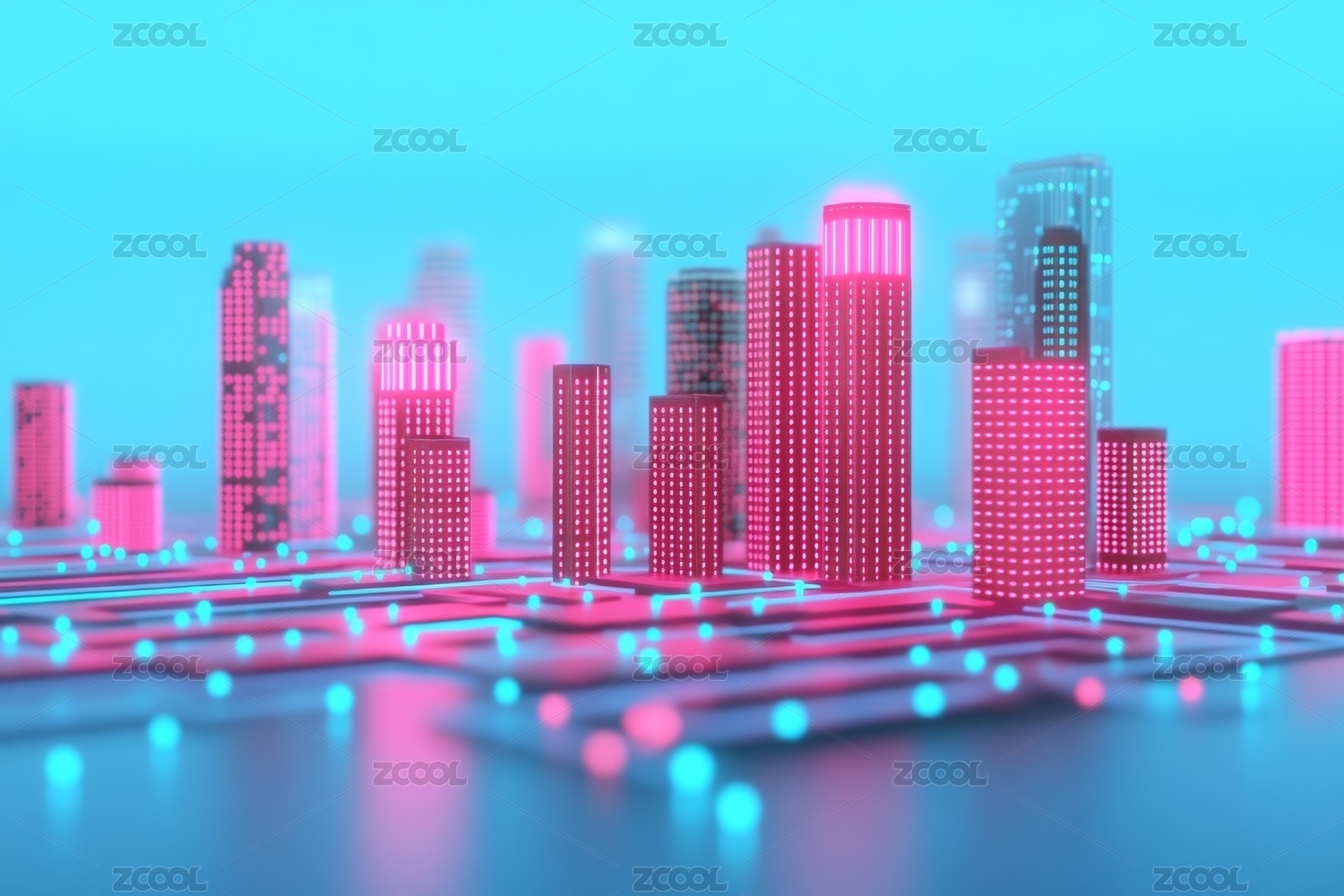 虚拟城市,赛博空间,数字化都市,游戏世界等三维概念图。