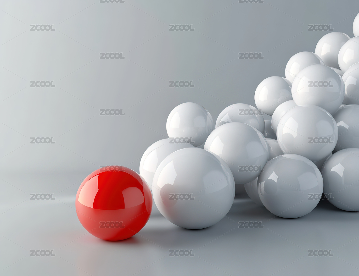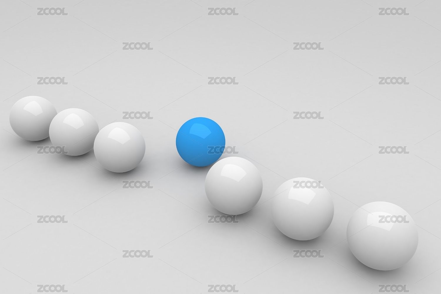蓝色的球站立于白色队列之前,团队组织领导概念